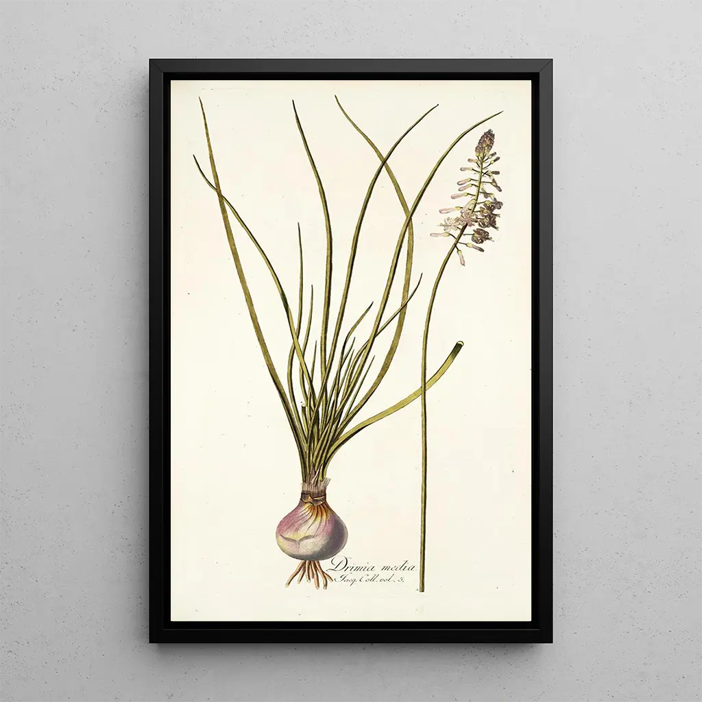 Drimia media : en botanisk elegans att upptäcka Konsttrycket av Drimia media för oss in i en värld av finhet och precision. Denna målning, utförd av Nikolaus Joseph Freiherr von Jacquin, framhäver en växt med slanka former och mjuka färger, som väcker naturens skönhet till liv. Nyansen av grönt och vitt blandas harmoniskt och skapar en lugnande och kontemplativ atmosfär. Akvarelltekniken, som behärskas av konstnären, gör det möjligt att fånga ljuset och texturen på bladen, vilket ger liv åt detta botaniska konstverk. Varje detalj är noggrant återgiven, vilket inbjuder betraktaren att uppskatta noggrannheten i avbildningen. Nikolaus Joseph Freiherr von Jacquin : en pionjär inom konstnärlig botanik Nikolaus Joseph Freiherr von Jacquin, botanist och konstnär från 1700-talet, spelade en avgörande roll i konst- och vetenskapshistorien. Utbildad vid Wiens universitet, påverkades han av de vetenskapliga upptäckterna under sin tid, särskilt under sina resor till Sydamerika och Karibien. Hans verk, såsom konsttrycket av Drimia media, vittnar om hans engagemang för att förena konst och vetenskap och hylla den mångfald av växtarter. Som medlem av Vetenskapsakademin bidrog Jacquin till klassificeringen av växter, vilket gör honom till en oumbärlig figur inom botanik. En dekorativ tillgång med många fördelar Konsttrycket av Drimia media är ett perfekt dekorativt föremål för att berika ditt hem, oavsett om det är i ett vardagsrum, ett kontor eller ett sovrum. Dess utskriftskvalitet och trohet mot de ursprungliga färgerna gör det till ett attraktivt val för botanikkännare och konstälskare. Denna målning ger en känsla av friskhet och lugn till ditt utrymme, samtidigt som den väcker beundran hos besökare. Genom att välja denna väggbonad, väljer du ett verk som förenar estetik och kultur, och gör din inredning till en sann spegling av din kärlek till naturen och konsten.