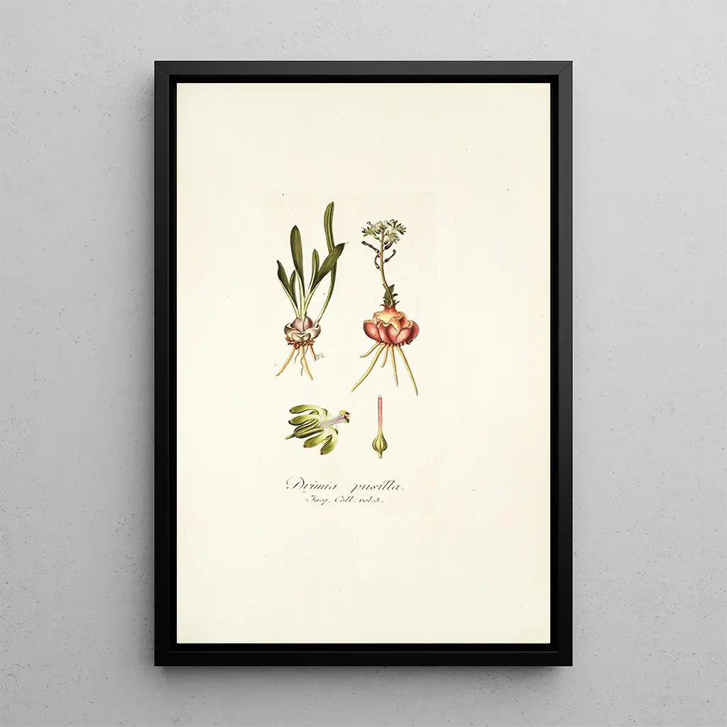Konsttrycket av Drimia pusilla är ett perfekt dekorativt val för att försköna ditt hem, oavsett om det är i ett vardagsrum, ett kontor eller ett sovrum. Dess utskriftskvalitet och trohet mot originalverken gör det till ett värdefullt tillskott till varje samling. Denna målning ger ett lätt och fräscht intryck till ditt utrymme, samtidigt som den väcker beundran hos dina gäster. Genom att välja denna duk, väljer du ett verk som förenar skönhet och kultur, och berikar din inredning med ett naturligt och konstnärligt liv.