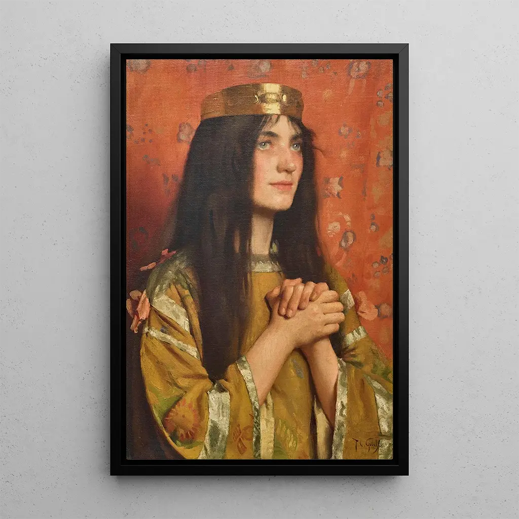 Thomas Cooper Gotch, né en 1854, est reconnu pour sa capacité à fusionner le réalisme et le symbolisme dans ses œuvres. Formé à la Royal Academy, il a été influencé par les préraphaélites et a su s'imposer comme un peintre de portrait et de genre. Son intérêt pour l'histoire et la mythologie se reflète dans ses tableaux, où il cherche à capturer des moments de beauté et de vérité. "La reine Clotilde" témoigne de son talent pour représenter des figures historiques avec une sensibilité unique, tout en ancrant son travail dans le contexte culturel de son époque.