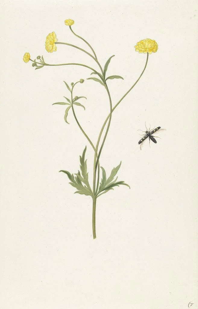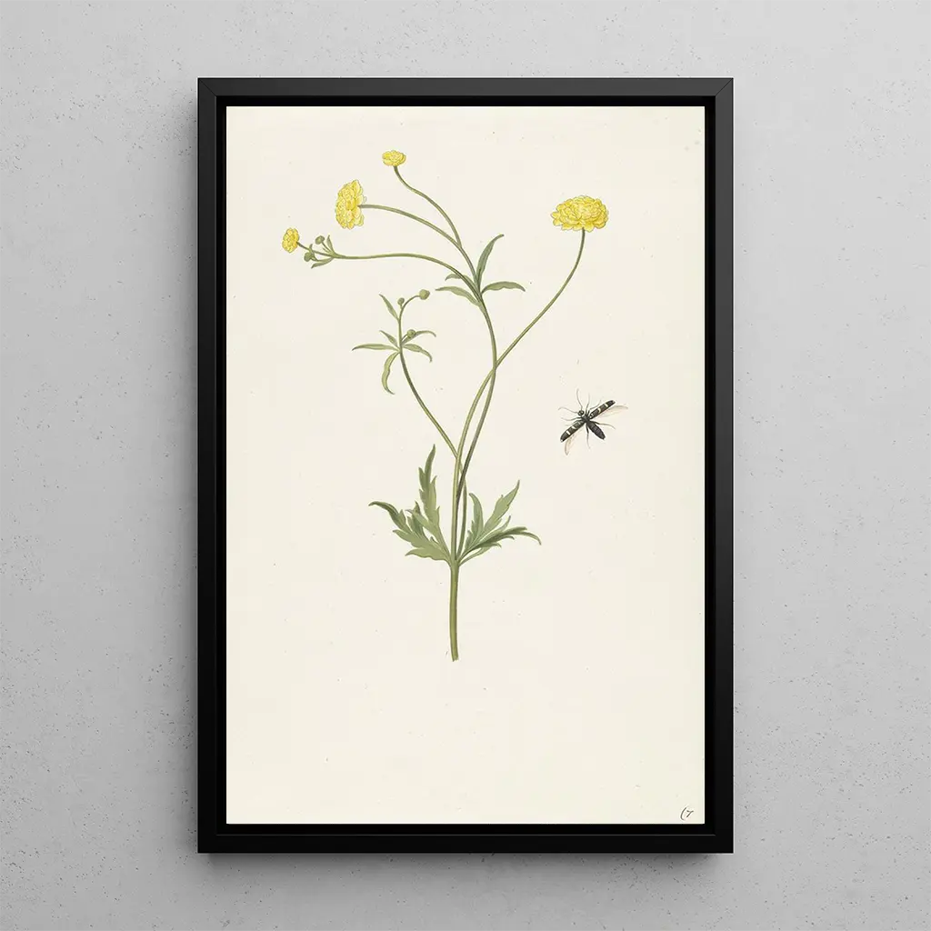 Målning av dubbla gula ranunkel och insekt - Pieter Withoos | Konsttryck