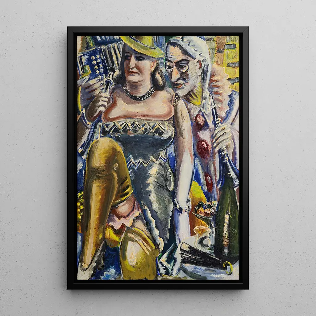 I denna konsttryck av målningen "Double portrait Carnaval artiste et femme" fångar Paul Kleinschmidt ett ögonblick av intimitet och glädje. De livfulla färgerna och de dynamiska formerna framkallar energin från karnevalen, medan ansiktena på figurerna, målade med en anmärkningsvärt finstämdhet, förmedlar en djup förbindelse. Konstnärens teknik, som blandar impressionism och expressionism, skapar en festlig och varm atmosfär, inbjuder betraktaren att dyka in i den färgglada världen av festen. De noggranna detaljerna i kostymerna och maskerna tillför en lekfull dimension till verket, vilket gör detta konsttryck till en äkta hyllning till livets firande.
