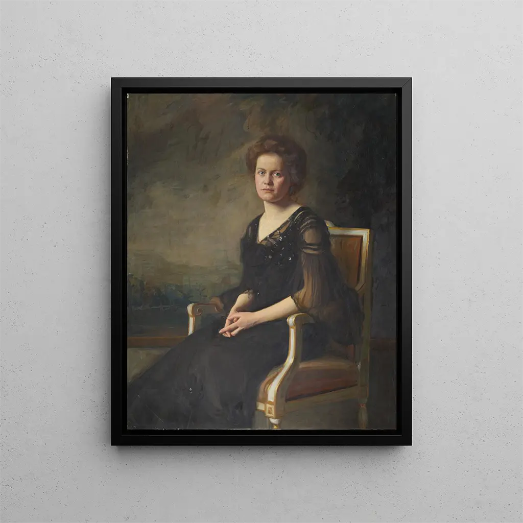 Stilen på "Ebba Björkbom - Bernhard Störmann" utmärker sig genom en subtil harmoni mellan realism och impressionism. Färgerna, noggrant utvalda, framkallar en mjuk palett som tycks andas lugn. De delikata dragen i Ebba, fångade med en anmärkningsvärt precision, vittnar om en obestridlig teknisk skicklighet. Bakgrunden, suddig och suggestiv, skapar en drömlik atmosfär som transporterar betraktaren bortom det konkreta, mot en introspektiv eftertanke. Varje element i kompositionen är noggrant utformat för att väcka en känsla, en reflektion över den mänskliga tillvaron, tidens gång och den flyktiga skönheten i livet. Detta konsttryck nöjer sig inte med att avbilda en figur; det berättar en historia, om en kvinna, en epok och en kultur.