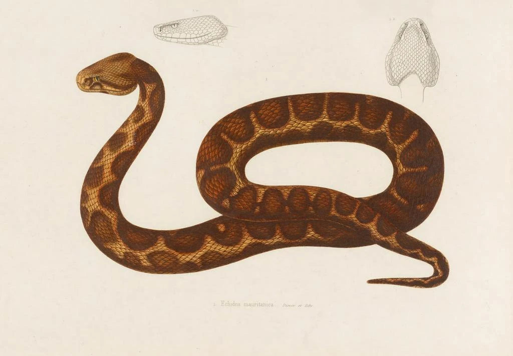 L'œuvre "Échidné Mauritanique" d'Arthus Bertrand évoque une nature vibrante et mystérieuse. La composition se distingue par des couleurs terreuses et des nuances de vert qui rappellent les paysages désertiques. La technique de l'artiste, mêlant aquarelle et encre, crée une atmosphère à la fois délicate et puissante. Chaque détail de l'échidné, avec ses piquants et son regard perçant, invite à une contemplation attentive. Ce tableau, véritable ode à la faune mauritanienne, transporte le spectateur au cœur d'un écosystème fascinant, où chaque élément semble raconter une histoire.