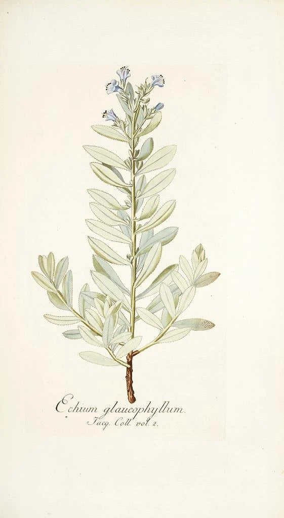 Nikolaus Joseph Freiherr von Jacquin, botanist och konstnär från 1700-talet, lyckades förena vetenskap och konst i sina verk. Utbildad vid Wiens universitet, påverkades han av de botaniska upptäckterna under sin tid, särskilt under sina resor till Sydamerika och Västindien. Hans illustrationer, såsom "Echium glaucophyllum", vittnar om hans engagemang för att dokumentera biologisk mångfald samtidigt som de erbjuder en raffinerad estetik. Jacquin är erkänd för att ha bidragit till utvecklingen av botanik som en vetenskaplig disciplin, samtidigt som han lämnat ett ovärderligt konstnärligt arv.