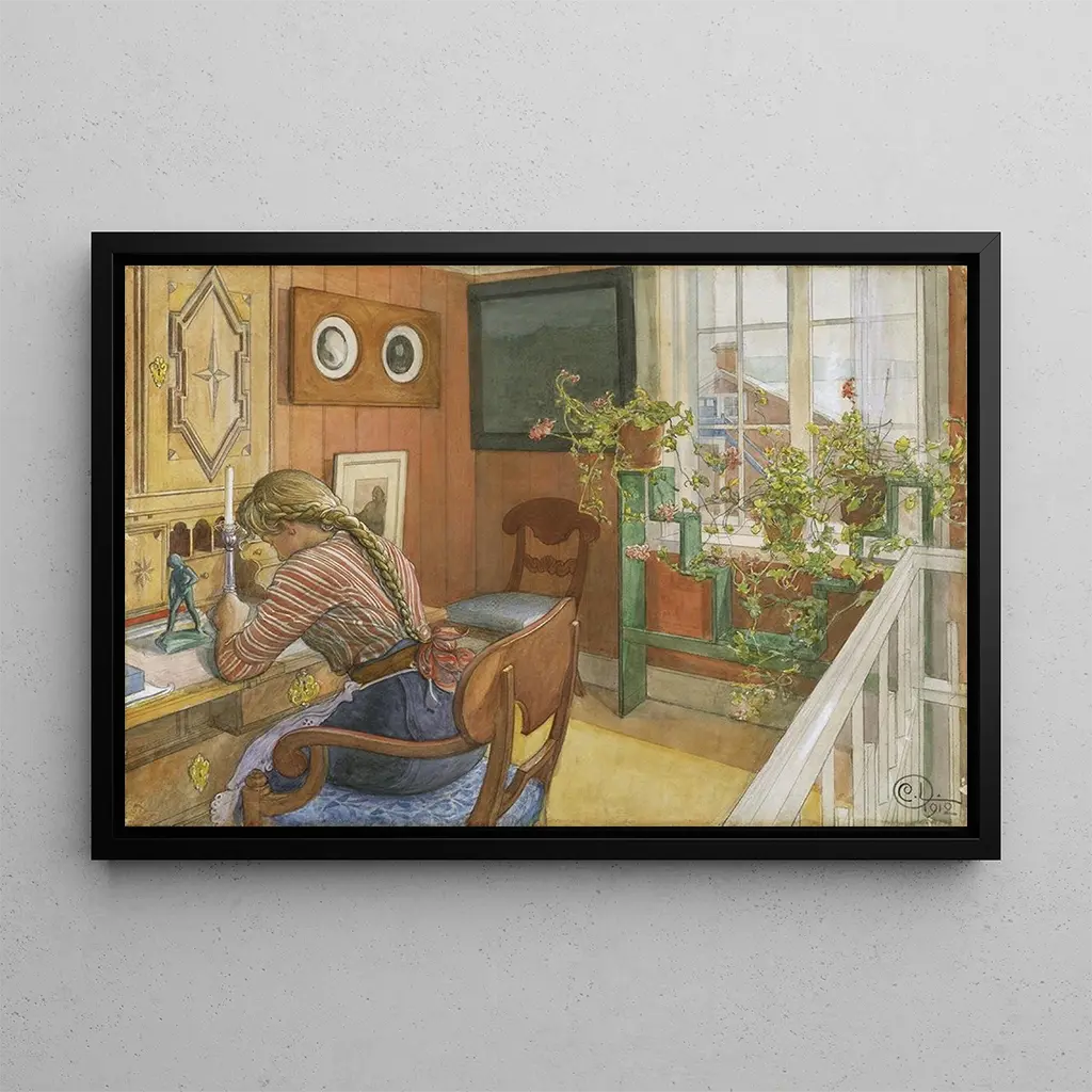 Carl Larsson, peintre suédois du XIXe siècle, est reconnu pour son rôle majeur dans le mouvement Arts & Crafts. Influencé par le préraphaélisme et le folklore scandinave, il a su allier tradition et modernité dans ses œuvres. Larsson a consacré une grande partie de sa carrière à représenter la vie familiale et les intérieurs suédois, apportant une touche de poésie à des scènes ordinaires. Son style, caractérisé par des lignes claires et des couleurs vives, a eu un impact durable sur l’art scandinave et continue d’inspirer de nombreux artistes contemporains.