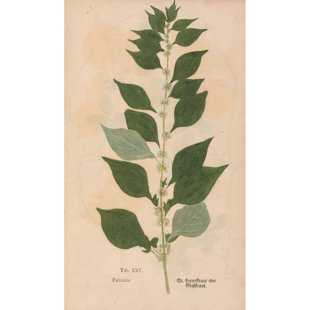 Konsttrycket av Ectypa vegetabilium Pl115 utmärker sig genom sitt rika färgspektrum och sina slående detaljer. De livfulla nyanser av grönt och lila blandas harmoniskt och väcker tanken på mångfalden och komplexiteten i den växtliga världen. Christian Gottlieb Ludwigs graveringsteknik gör det möjligt att återge varje blomblad och blad med en precision som fängslar ögat. Detta verk, både vetenskapligt och konstnärligt, inbjuder till noggrann eftertanke och avslöjar naturens gömda skönhet.