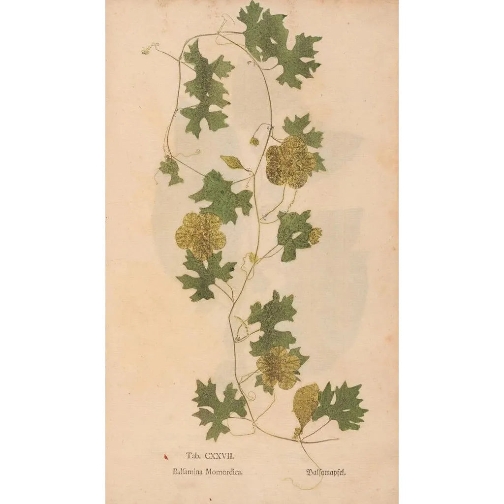 L'œuvre "Ectypa vegetabilium Pl127" av Christian Gottlieb Ludwig fördjupar oss i en värld där naturen uttrycker sig med en enastående precision. Kompositionen framhäver ett brett utbud av växter, noggrant detaljerade, vilket avslöjar den rika växtligheten. Färgerna, från livfulla gröna till jordnära nyanser, skapar en visuell harmoni som inbjuder till noggrann observation. Den graveringsteknik Ludwig använder möjliggör att fånga varje ven, varje blomblad, vilket ger detta konsttryck ett nästan levande utseende. Atmosfären som avtecknar sig i detta verk är en hyllning till biologisk mångfald, en homage till den vackra växtvärlden.