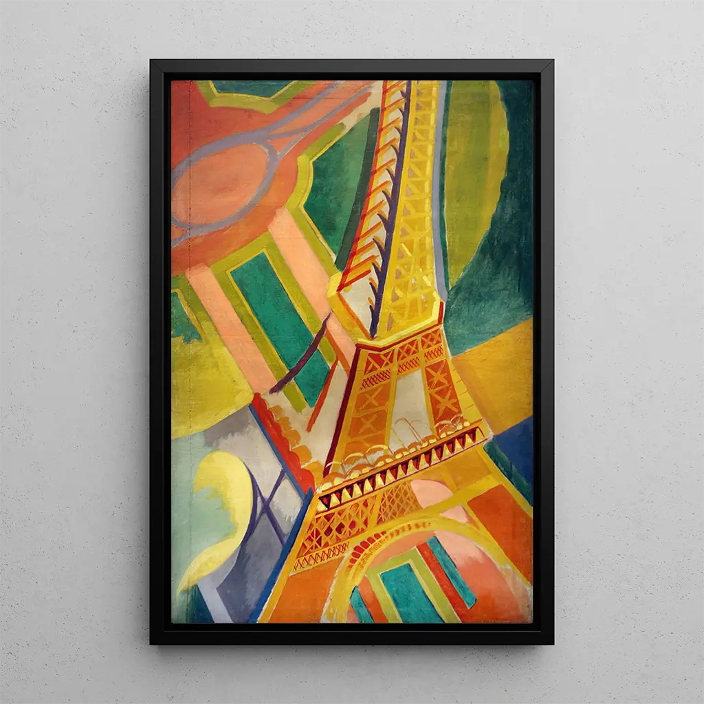 I detta fängslande konsttryck hyllar Robert Delaunay Eiffeltornet, Paris ikoniska symbol och modern arkitektur. Genom geometriska former och strålande färger förmedlar han stadens pulserande energi. Nyansen av rött, gult och blått flätas samman för att skapa en dynamisk komposition som framkallar rörelse och modernitet. Delaunays teknik, inspirerad av kubismen, bryter ner tornets struktur samtidigt som den behåller dess essens, vilket ger en djärv och innovativ tolkning av detta ikoniska monument.