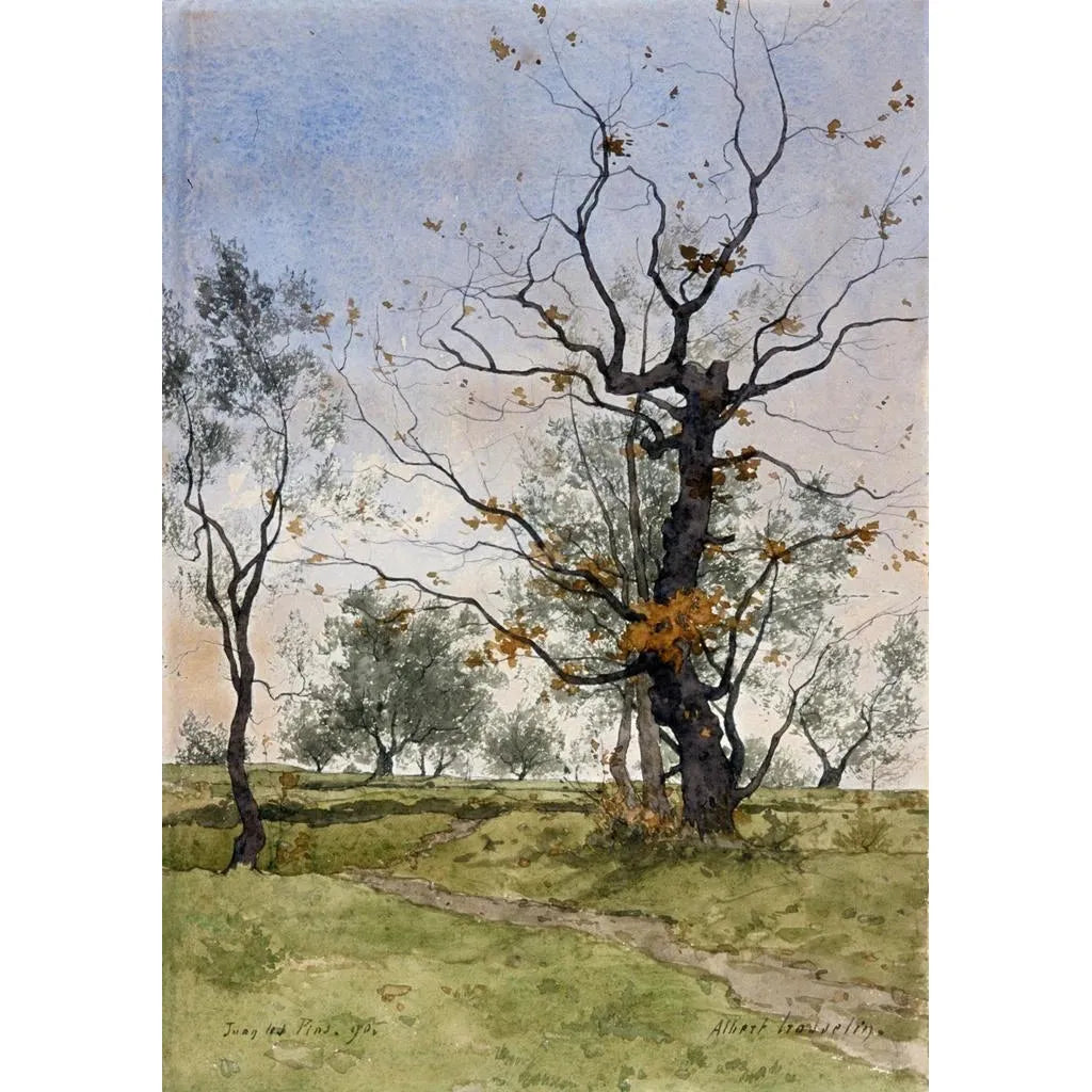 Albert Gosselin, fransk konstnär från början av 1900-talet, lyckades fånga essensen av ljuset och landskapen i Provence. Påverkad av impressionisterna utvecklade han en stil som framhäver färg och ljus, och skapade livfulla och vibrerande konstverk. Gosselin tillbringade en del av sitt liv med att utforska landskapen i södra Frankrike, där han tog in den naturliga skönheten som omgav honom. Chêne och olivträd Juan-les-Pins är ett perfekt exempel på hans konstnärliga tillvägagångssätt, där naturen blir ett centralt motiv och avslöjar magin i en miljö i harmoni med människan.