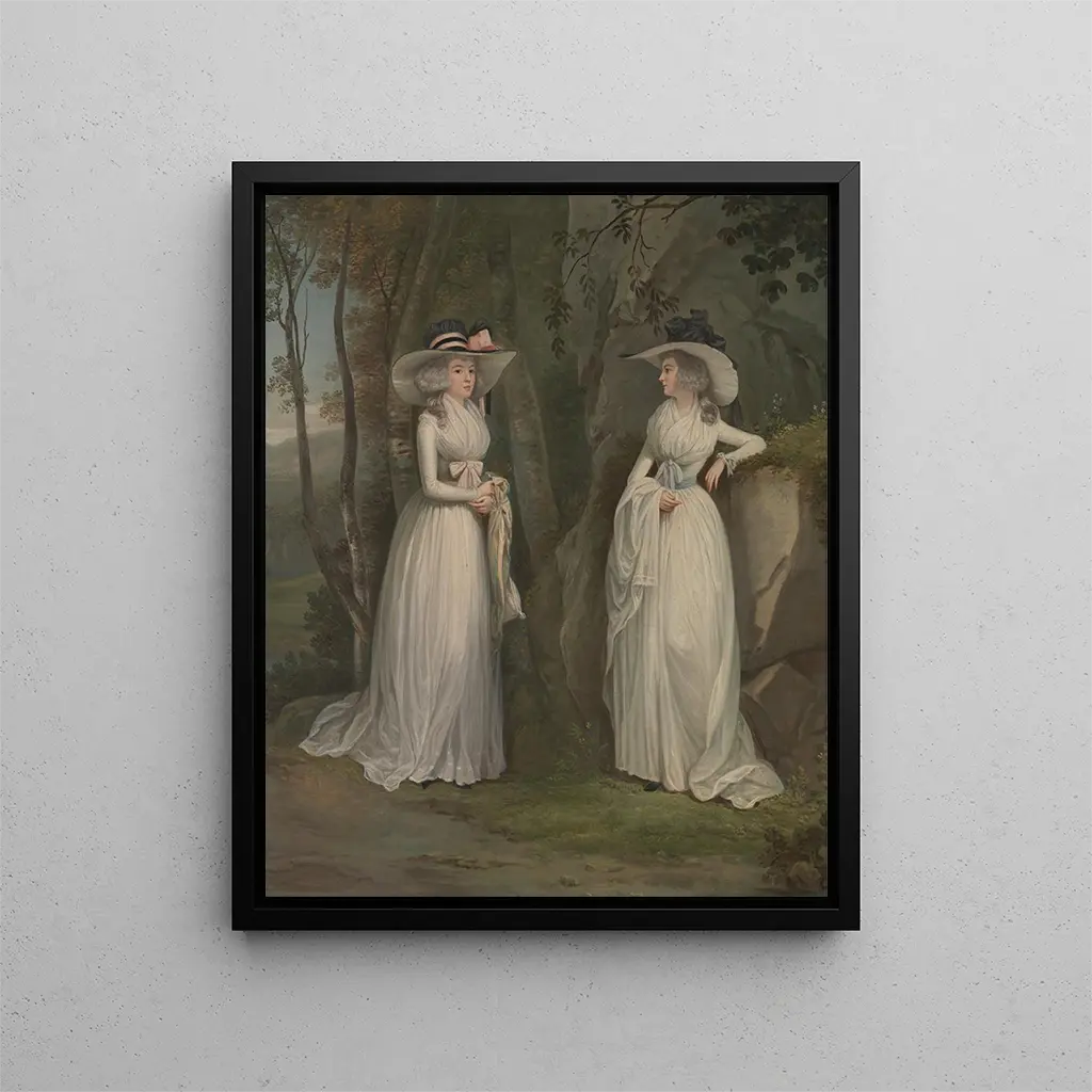Konsttryck Eleanor och Margaret Ross - Alexander Nasmyth – Fängslande introduktion I det myllrande universet av brittisk konst under 1800-talet utmärker sig verket "Eleanor och Margaret Ross" av Alexander Nasmyth genom sin finhet och elegans. Denna målning, som fångar själva essensen av familjeliv och mänskliga relationer, för oss till ett förlorat ögonblick där tiden tycks stanna för att ge plats åt eftertanke. De två unga kvinnornas blick, fylld av ömhet och samhörighet, inbjuder betraktaren att reflektera över deras historia, drömmar och ambitioner. Konsttrycket av detta ikoniska verk möjliggör en ny upptäckt av Nasmyths talang, men också av den skönhet som finns i familjeband som överskrider tidens gränser. Stil och verkets särprägel Verket "Eleanor och Margaret Ross" kännetecknas av en enastående behärskning av ljus och färger. Nasmyth, en verklig virtuos, leker med nyanser för att skapa en intim och varm atmosfär. De två systrarnas ansikten, noggrant detaljerade, är badade i ett mjukt ljus som framhäver deras delikata uttryck. Bakgrunden är skickligt sammansatt, med inslag av naturen och ett inomhuslandskap, vilket förstärker idén om ett gemensamt levnadsutrymme. Denna blandning av realism och romantik ger verket en tidlös dimension, där varje detalj tycks berätta en historia. Hur Nasmyth fångar känslorna hos sina motiv vittnar om hans skarpa observationsförmåga och hans förmåga att översätta skönheten i mänskliga relationer på duken. Konstnären och hans inflytande Alexander Nasmyth, född i Skottland 1758, är en framstående figur inom landskaps- och porträttmåleri av sin tid. Utbildad i en rik konstnärlig miljö, utvecklade han en unik stil som förenar noggrannhet i teckningen med en poetisk känsla. Nasmyth hade ett betydande inflytande på sina samtida, särskilt tack vare sin förmåga att integrera naturens element i sina porträtt, vilket skapade harmoniska och levande kompositioner. Verket "Eleanor och Margaret Ross" illustrerar perfekt denna innovativa metod, där porträttet blir en spegling av en miljö och en atmosfär. Genom att hylla vardagens skönhet banade Nasmyth väg för