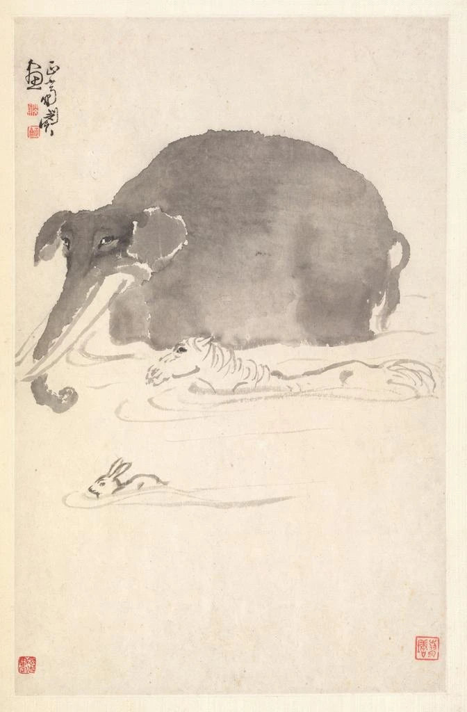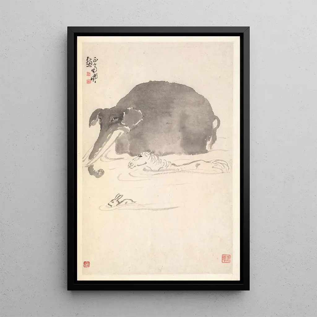 Konsttryck | Elefant, häst och hare - Min Zhen