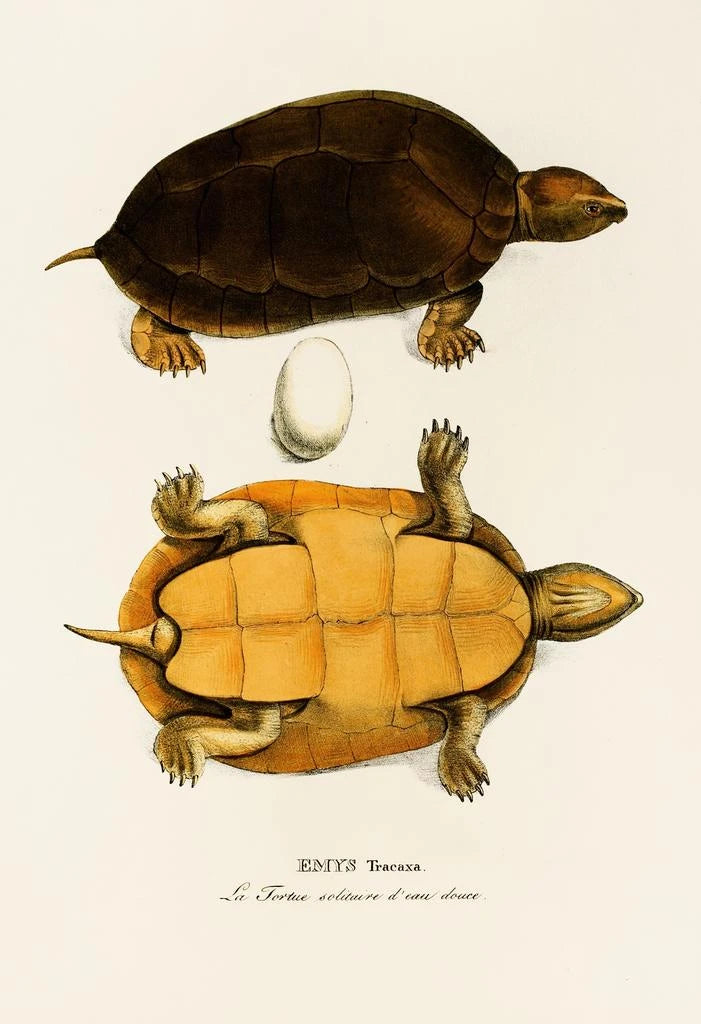 Konsttrycket av "Emys Tracaxa" är ett klokt dekorativt val för att försköna ditt hem, oavsett om det är i ett vardagsrum, ett kontor eller ett sovrum. Dess utskriftskvalitet garanterar en enastående trohet mot detaljerna i det ursprungliga verket, och tillför en touch av natur och lugn till ditt utrymme. Denna tavla, med sin obestridliga estetiska attraktion, kommer att fängsla dina gäster och stimulera berikande samtal. Genom att välja detta konsttryck gör du ett val som förenar skönhet, vetenskap och respekt för miljön.