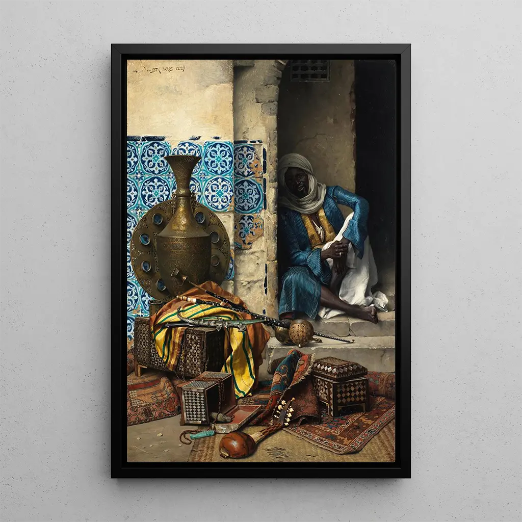 Cette konsttryck d'Un marchand d'artefacts est une pièce décorative qui enrichit tout espace, qu'il s'agisse d'un salon, d'un bureau ou d'une bibliothèque. Sa qualité de konsttryck assure une fidélité aux détails de l'œuvre originale, tout en apportant une touche d'exotisme och de sophistication à votre décor. L'attrait esthétique de cette toile, avec ses couleurs éclatantes och ses détails minutieux, en fait un choix idéal pour ceux qui souhaitent créer une ambiance chaleureuse och inspirante, tout en célébrant la beauté de l'art orientaliste.