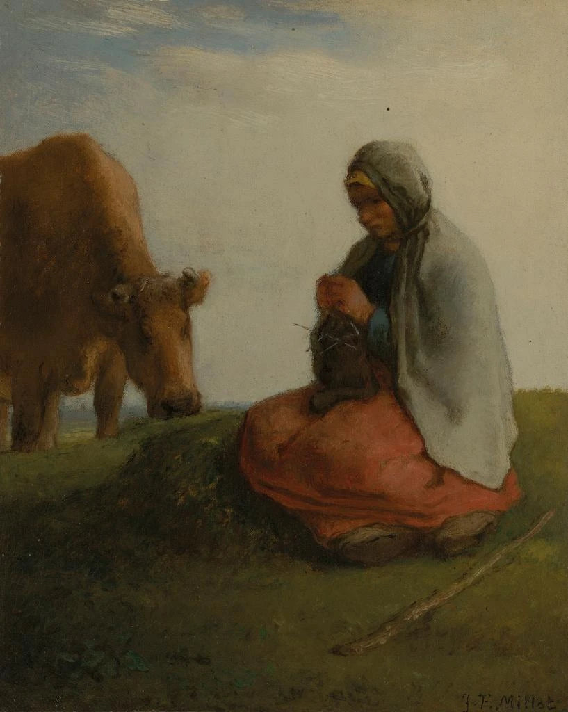 Målning En herdeska som stickar - Jean-François Millet | Konsttryck