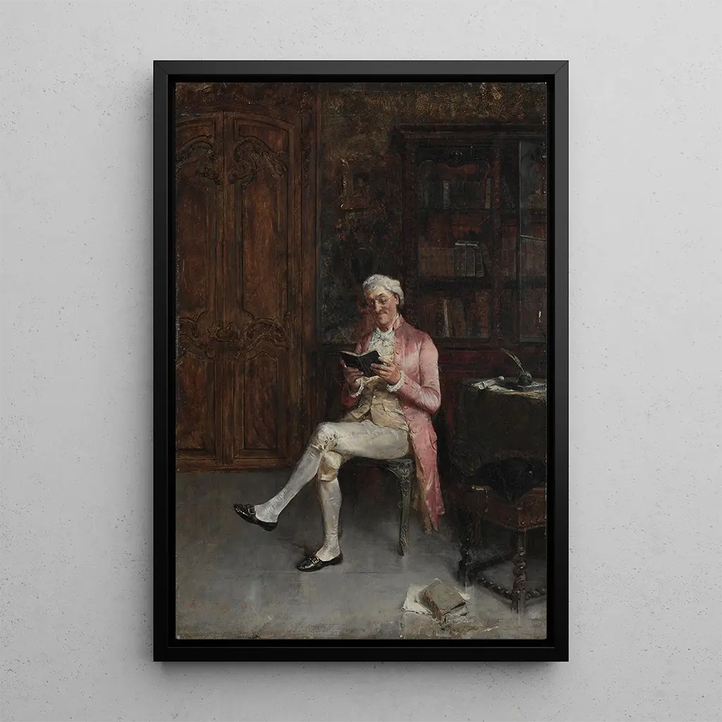 I detta konsttryck av Un philosophe fångar Walter Gay essensen av intellektuell eftertanke. Canvastavlan, badad i varma nyanser av brunt och guld, framkallar en atmosfär av lugn och djup. Den centrala figuren, försjunken i sina tankar, är omgiven av symboliska föremål som förstärker idén om kunskapssträvan. Gays teknik, som förenar realism och impressionistiska drag, skapar ett subtilt ljusspel som fångar ögat och inbjuder till reflektion. Varje detalj, från veck på filosofens dräkt till skuggor som projiceras på väggen, bidrar till en immersiv och poetisk stämning.