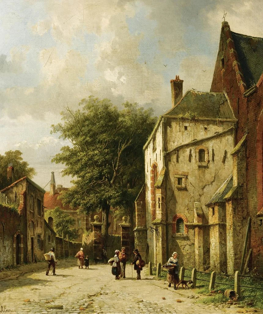 Konsttryck En stadsbildscen i en nederländsk stad - Adrianus Eversen – Fängslande introduktion
