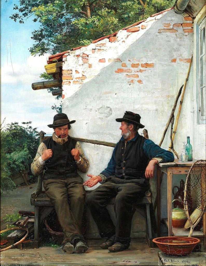 Carl Bloch, dansk målare från 1800-talet, är erkänd för sin tekniska skicklighet och sin förmåga att framkalla djupa berättelser genom sina verk. Utbildad vid de största konstakademierna, utvecklade han en unik stil som förenar realism och romantik. Bloch har ofta påverkats av naturen och vardagslivet, vilket återspeglas i "En konversation mellan två fiskare". Hans verk, även om de ofta är religiösa, vittnar om en mänsklig känslighet som överskrider de ämnen som behandlas. Hans inflytande består än idag, och inspirerar många konstnärer och konstälskare att utforska de känslor och berättelser som döljer sig bakom varje konstverk.