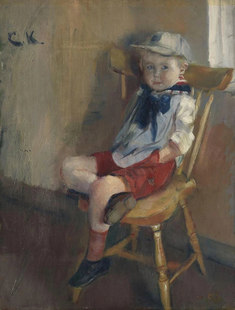 I den myllrande konstvärlden lyckas vissa verk fånga själva essensen av barndomen med sådan ömhet att de överskrider tidens gränser. "En liten pojke på en stol" av Christian Krohg är ett perfekt exempel. Detta verk, fyllt av ömhet och melankoli, inbjuder oss att dyka in i en värld där oskuld och nyfikenhet blandas, vilket avslöjar den enkla skönheten i vardagen. Den unge pojkens blick, både contemplativ och nyfiken, väcker en mängd känslor och påminner oss om barndomens skörhet och skönhet. När man betraktar detta konsttryck förflyttas betraktaren till ett avskilt ögonblick, där varje detalj verkar viska en historia.