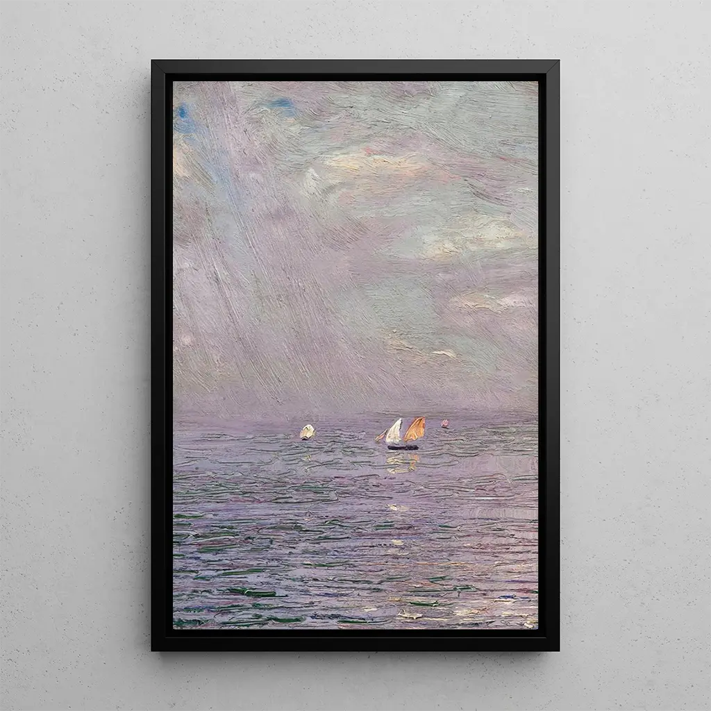 "En mer" av Nikolai Nikanorovich Dubovskoy tar oss till hjärtat av en livlig sjöscen. Nyanser av blått och vitt blandas för att skildra de stormiga vågorna och den föränderliga himlen, vilket skapar en slående dynamik. Dubovskoys teknik, kännetecknad av energiska penseldrag, ger liv åt detta konsttryck, där varje rörelse i vattnet känns påtaglig. Atmosfären är både dramatisk och poetisk, och väcker kraften i havet och den vilda naturens skönhet. Detta konsttryck inbjuder till en flykt, till ett äventyr utanför kusten.