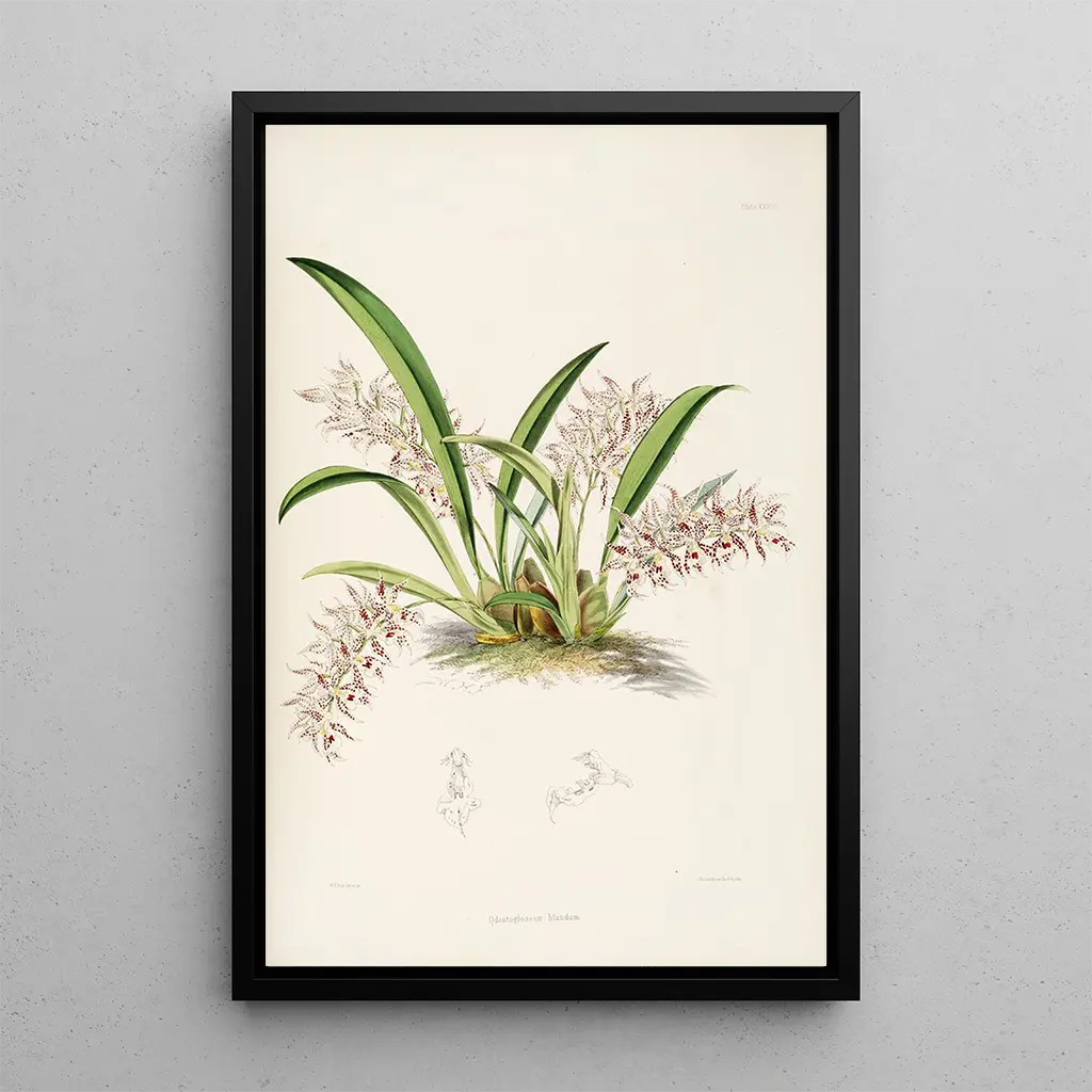 Cette konsttryck "Odontoglossum Pl27" est une pièce décorative idéale pour embellir divers espaces tels que le salon, le bureau ou même la chambre. Sa qualité d'impression garantit une fidélité remarquable aux détails de l'œuvre originale, permettant de profiter pleinement de sa beauté. L'attrait esthétique de cette toile réside dans sa capacité à apporter une touche de nature et d'élégance à votre intérieur. En intégrant ce tableau dans votre décoration, vous offrez à votre espace une atmosphère sereine et raffinée, tout en célébrant l'art botanique.