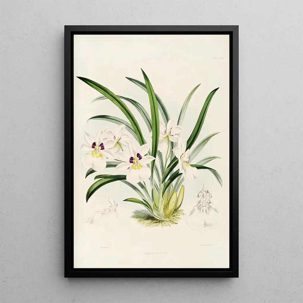 Konsttrycket av Odontoglossum Pl29 är ett dekorativt föremål som kan försköna vilket utrymme som helst, oavsett om det är ett vardagsrum, ett kontor eller ett sovrum. Dess utskriftskvalitet och trohet mot de ursprungliga detaljerna gör det till ett perfekt val för konst- och botanikkännare. Genom att integrera detta konsttryck i din inredning tillför du en touch av elegans och sofistikering till ditt hem. Den estetiska dragningskraften hos detta verk ligger inte bara i dess visuella skönhet, utan också i den historia det berättar, vilket gör det till ett fascinerande samtalsämne.