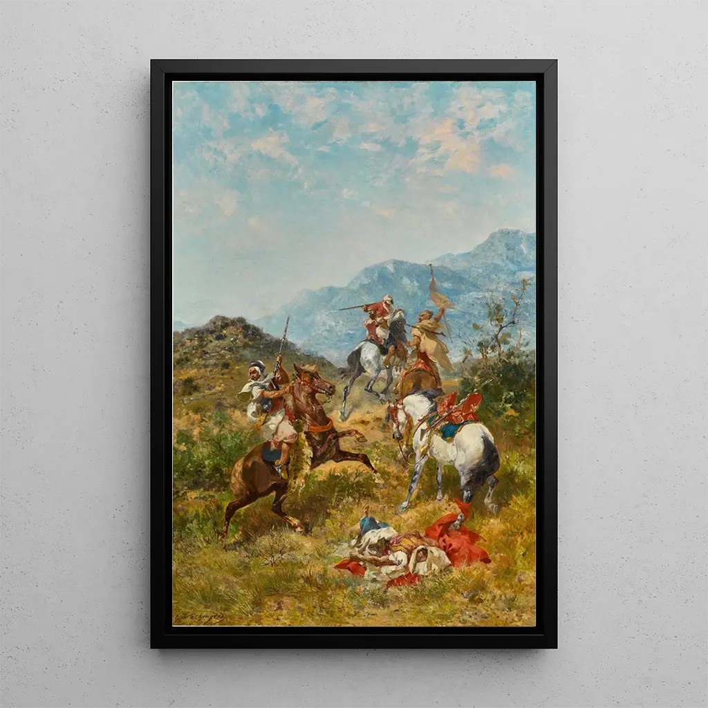 Konsttrycket av 'En skärmytsling' är ett djärvt dekorativt val som kommer att höja din inredning. Oavsett om det är i ett kontor, ett vardagsrum eller ett lekrum, tillför detta konsttryck en touch av historia och dynamik till din inredning. Dess utskriftskvalitet garanterar en trohet mot detaljerna i det ursprungliga verket, vilket gör det möjligt att fullt ut uppskatta den avbildade scenen. Genom att lägga till detta konsttryck i din samling skapar du en fängslande fokuspunkt som väcker intresse och samtal, samtidigt som du berikar atmosfären i ditt hem.