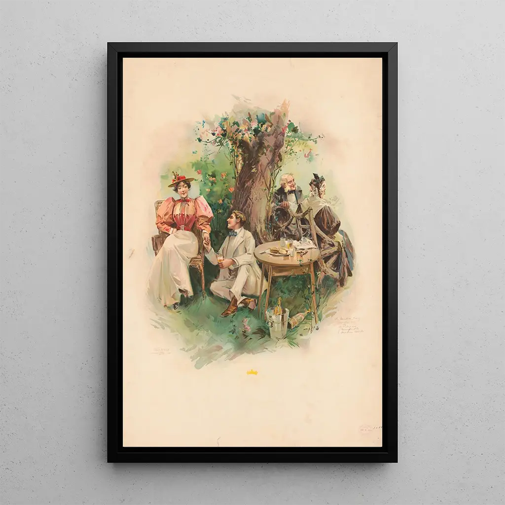 Konsttrycket av "Une garden-party" är ett dekorativt val som tillför en glädjefylld touch till ditt hem. Oavsett om det är i ett vardagsrum, matsal eller kontor, drar denna tavla till sig blickar och väcker positiva känslor. Dess tryckkvalitet garanterar en trohet mot färger och detaljer i originalverket, samtidigt som det skapar en varm och välkomnande atmosfär. Genom att integrera detta konsttryck i din inredning skapar du ett utrymme där gemenskap och estetik möts i harmoni.