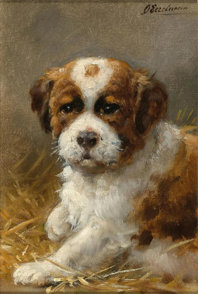 Otto Eerelman, verksam under 1800-talet, är känd för sina porträtt av djur, särskilt hundar. Påverkad av den romantiska rörelsen, lyckas han fånga inte bara det fysiska utseendet av sina motiv, utan även deras karaktär och essens. Eerelman har etablerat sig som en utvald konstnär för djurälskare, tack vare sin förmåga att göra varje varelse unik och levande. Hans passion för hundar, och särskilt för majestätiska raser som Saint-Bernard, har gjort det möjligt för honom att skapa tidlösa verk som fortsätter att röra dagens betraktare.