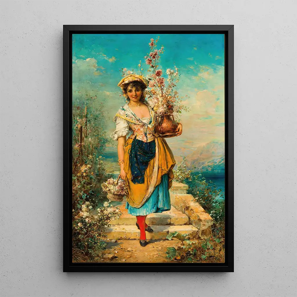 Konsttrycket av "En vacker blomsterförsäljare" är ett perfekt tillskott till din inredning. Oavsett om det är i ett vardagsrum, matsal eller kontor, tillför detta konsttryck en touch av färg och liv till ditt utrymme. Dess reproduktionskvalitet garanterar en anmärkningsvärt trogen återgivning av detaljerna, vilket gör att du kan njuta av konstverkets skönhet i din egen miljö. Den estetiska attraktionen hos detta konsttryck gör det till ett dekorativt element som garanterat kommer att dra till sig uppmärksamhet och väcka känslor, och förvandla ditt hem till en varm och välkomnande plats.