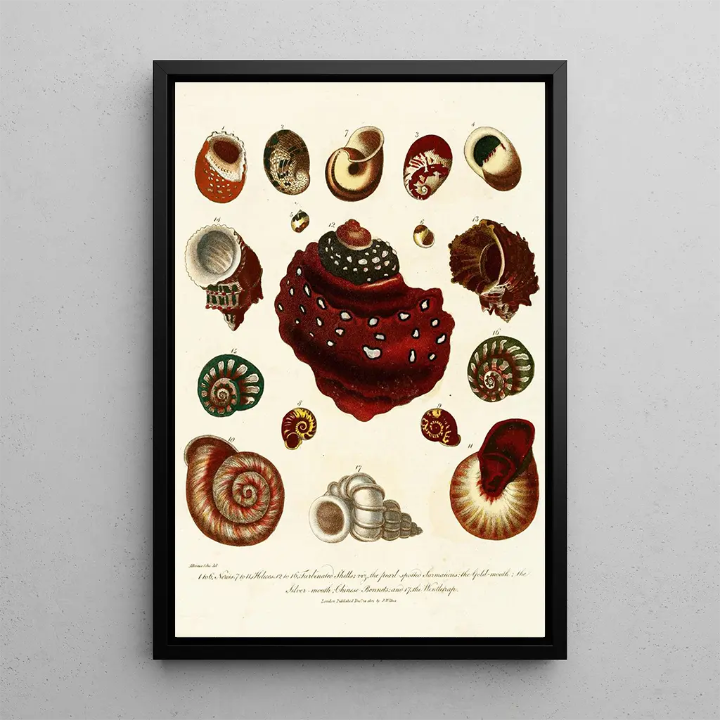 John Chapman, verksam på 1800-talet, är erkänd för sina bidrag till naturalistisk illustration, särskilt inom konchyliologi. Påverkad av de vetenskapliga upptäckter som gjordes under hans tid, lyckades han kombinera vetenskaplig precision med konstnärlig estetik. Hans verk, som detta konsttryck, vittnar om naturens betydelse i konst och om ett växande intresse för biologisk mångfald. Genom sina illustrationer har Chapman inte bara dokumenterat marina arter, utan också ökat allmänhetens medvetenhet om skönheten och sårbarheten hos marina miljöer.