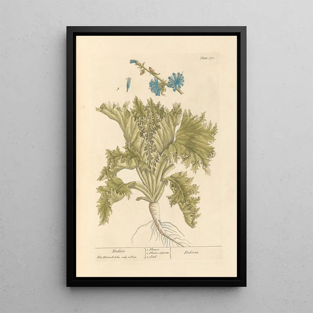 Konsttrycket av "Endive" är ett perfekt dekorativt inslag för olika utrymmen som vardagsrummet, köket eller till och med kontoret. Dess förfinade estetik och fängslande detaljer gör det till en tavla som drar till sig blickar och väcker samtal. Kvaliteten på trycket garanterar en trohet mot färger och texturer i det ursprungliga verket, och kan tillföra en touch av naturen till ditt hem. Genom att välja detta konsttryck, väljer du inte bara en elegant dekoration, utan också en hyllning till botanisk konst och växternas skönhet.