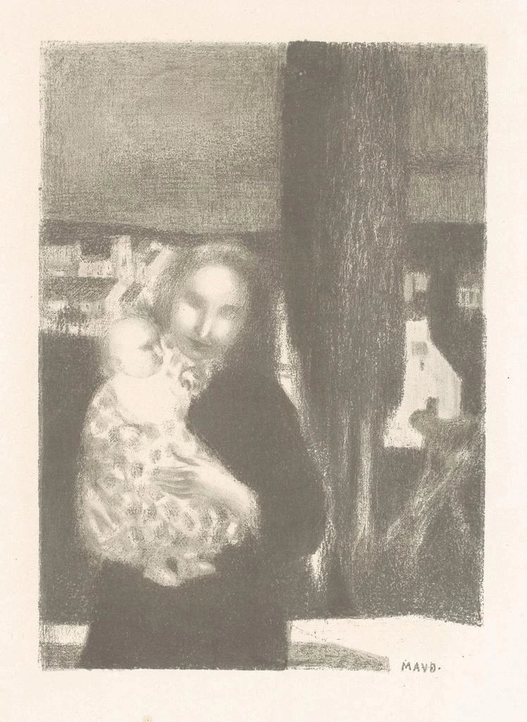 I detta verk fångar Maurice Denis den mjuka känslan av ett intimt ögonblick mellan en mor och hennes barn, inbäddat i en fridfull landskapsmiljö där ett majestätiskt cypressträd reser sig. Pastellfärger, mjuka och lugnande, framkallar en atmosfär av fred och skydd. Denis teknik, kännetecknad av delikata färgstråk, skapar en visuell harmoni som inbjuder till eftertanke. Varje detalj, från den medskyldiga blicken mellan mor och barn till nyanserna av grönt i cypressträdet, bidrar till en varm och tröstande stämning, vilket gör detta konsttryck till ett verkligt visuellt poem.