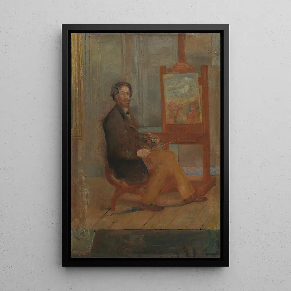 La konsttryck d'Ensor à son chevalet nous offre un aperçu captivant de l'artiste en pleine création. Ce tableau, riche en couleurs et en textures, dépeint un moment d'introspection où l'artiste semble dialoguer avec son œuvre. Les teintes vives et les formes expressives reflètent l'énergie créative d'Ensor, tandis que son regard concentré révèle la passion qui l'anime. L'atmosphère de ce tableau est à la fois intime et dynamique, invitant le spectateur à partager ce moment unique de l'acte artistique.