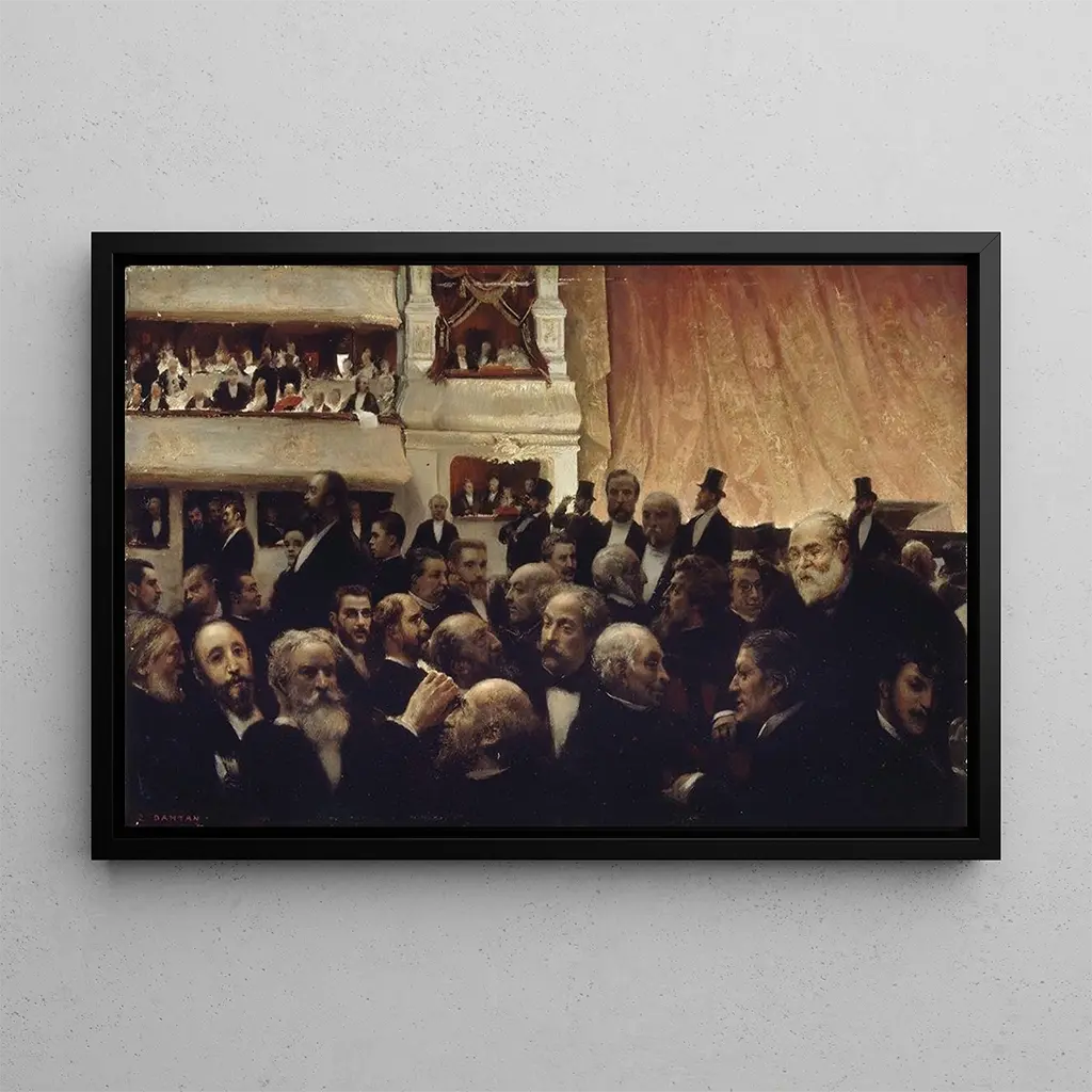 Édouard Dantan, peintre et illustrateur du XIXe siècle, est reconnu pour ses œuvres qui célèbrent la vie culturelle de son époque. Évoluant dans le milieu artistique parisien, il a su capturer l'effervescence du théâtre et des spectacles. Influencé par les grands maîtres de son temps, Dantan a développé un style qui allie réalisme et sensibilité. Entracte d'une première à la Comédie-Française témoigne de son talent à immortaliser des moments de vie, tout en offrant un aperçu de l'importance du théâtre dans la société française de l'époque. Son travail reste une référence pour ceux qui s'intéressent à l'histoire du théâtre et de l'art.