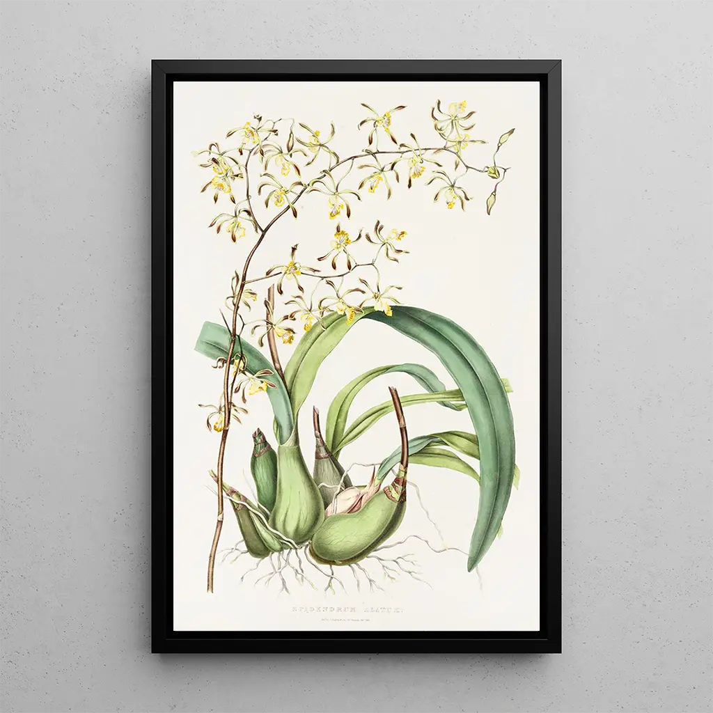 Epidendrum Alatum : en blomsterdansande konsttryck L'Epidendrum Alatum, med sina delikata kronblad och livfulla färger, framkallar en värld av naturlig skönhet. Detta konsttryck, skapat med noggrann precision, fångar essensen av denna tropiska orkidé. Nyansen av gult och rött blandas harmoniskt, vilket skapar en varm och välkomnande atmosfär. Konstnärens teknik, som kombinerar akvarell och teckning, gör det möjligt att känna lättheten hos blommorna samtidigt som deras komplexitet framhävs. Varje detalj är noggrant utarbetad, inbjudande betraktaren att fördjupa sig i en blomstervärld där naturen avslöjar sin fulla prakt. James Bateman : en pionjär inom botanisk konst James Bateman, botanist och konstnär från 1800-talet, lyckades förena vetenskap och konst i sina verk. Under en tid då intresset för botanik var i stark tillväxt, bidrog han till dokumentationen av växtarter genom sina illustrationer. Påverkad av de vetenskapliga upptäckterna under sin tid, lyckades Bateman fånga växternas skönhet med en oöverträffad precision. Hans verk, inklusive Epidendrum Alatum, vittnar om hans engagemang för naturen och hans önskan att dela sin passion med världen. Hans arv består, och inspirerar många samtida konstnärer och botaniker. En dekorativ tillgång med många fördelar Konsttrycket av Epidendrum Alatum är ett perfekt dekorativt föremål för att försköna vilket utrymme som helst, oavsett om det är ett vardagsrum, ett kontor eller ett sovrum. Dess tryckkvalitet och trohet mot de ursprungliga färgerna gör det till ett attraktivt val för konst- och botanikkännare. Genom att lägga till detta konsttryck till din inredning, tillför du en frisk och livfull touch till din omgivning. Dess estetiska tilltal och unika karaktär gör det till ett fascinerande samtalsämne, samtidigt som det hyllar naturens skönhet.