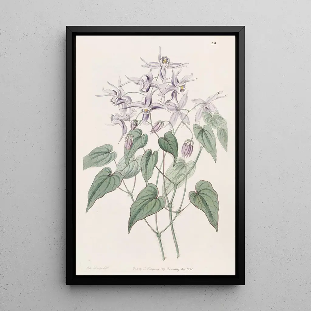 Sydenham Edwards, verksam i början av 1800-talet, är erkänd som en av pionjärerna inom botanisk illustration. Påverkad av tidens konstnärliga rörelser, lyckades han förena vetenskap och konst, vilket gjorde hans verk inte bara estetiskt tilltalande utan också informativa. Hans passion för botanik ledde till att han skapade många illustrationer, inklusive detta konsttryck av Epimède violet, som vittnar om hans engagemang för att fånga naturens skönhet. Edwards bidrog till att popularisera exotiska växter i Europa, och hans arbete har haft en varaktig inverkan på botanisk konst, vilket inspirerat många konstnärer och forskare att fortsätta på denna väg.