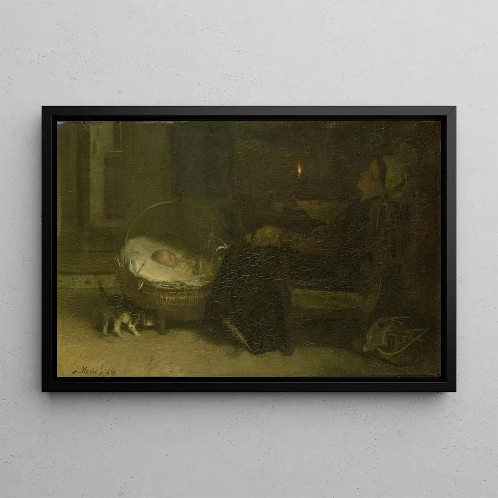 La reproduction d'Épuisée Mère Surveillée, œuvre de Jacob Maris, évoque une scène intime et émotive où la fatigue d'une mère se mêle à l'amour inconditionnel qu'elle porte à son enfant. Les couleurs douces et les nuances pastel créent une atmosphère chaleureuse, tandis que la lumière délicate met en valeur les traits apaisés de la mère. La technique de Maris, caractérisée par des coups de pinceau fluides, donne vie à cette scène touchante, invitant le spectateur à ressentir la profondeur de ce moment de tendresse.