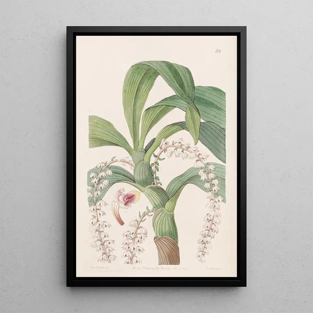 La konsttryck de l'Éria à nombreuses queues est une œuvre qui évoque la grâce et la beauté des plantes exotiques. Les couleurs chatoyantes et les formes délicates des fleurs se déploient avec élégance, créant un tableau vivant qui attire l'œil. La technique de l’aquarelle permet de rendre les nuances subtiles et les textures des feuilles, offrant une atmosphère à la fois sereine et vibrante. Chaque détail est soigneusement élaboré, invitant à une contemplation attentive de cette merveille botanique.