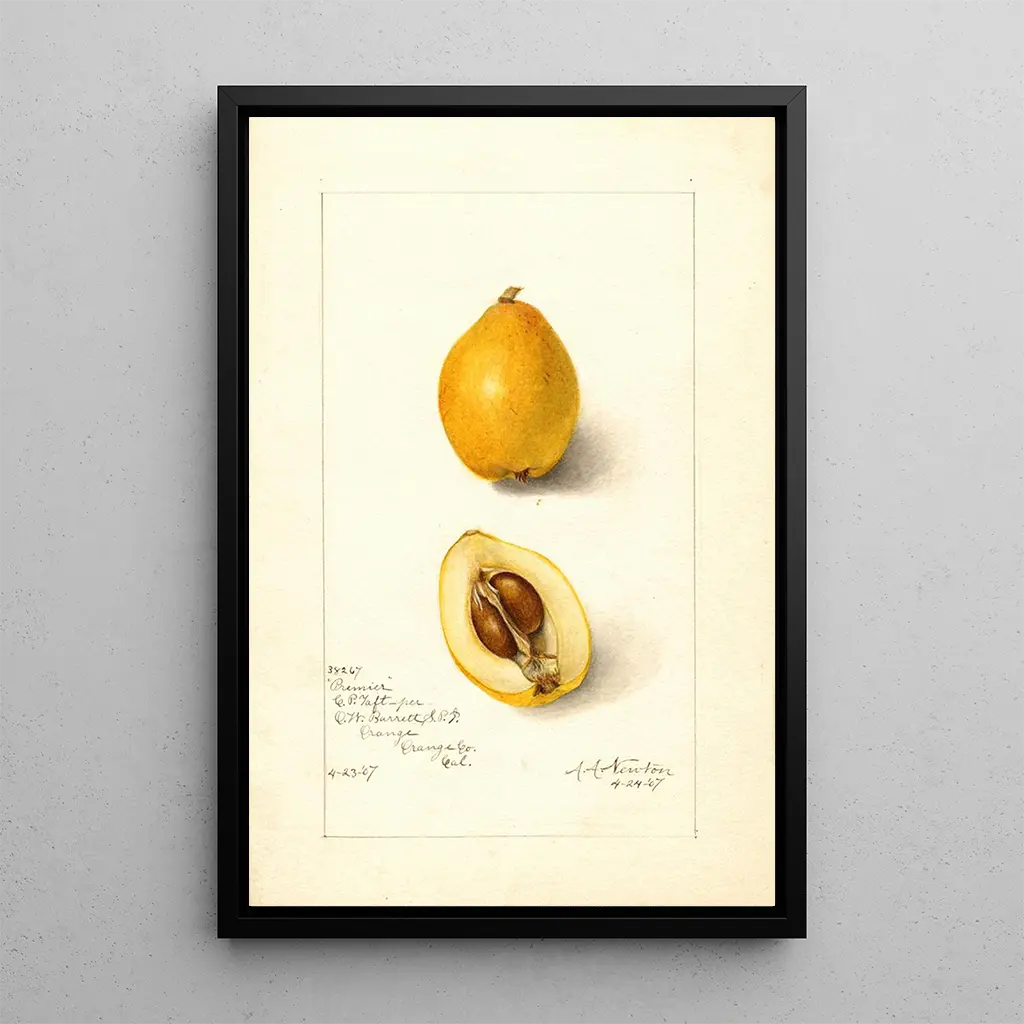Eriobotrya japonica Premier : en hyllning till naturen Den konsttryck av Eriobotrya japonica Premier framkallar den praktfulla skönheten hos denna subtropiska växt genom en palett av livfulla färger. De varma nyanserna av orange och gult blandas med frodiga gröna, vilket skapar en harmonisk komposition som fångar ögat. Tekniken som används, troligen akvarell, gör det möjligt att återge bladens lätthet och blommornas delikata elegans, och skapar en atmosfär som är både glad och lugnande. Detta verk inbjuder till en fördjupning i den naturliga skönheten, där varje detalj lyfts fram med omsorg. Amanda Almira Newton : en konstnär med fokus på botanik Amanda Almira Newton, en ikonisk figur i början av 1900-talet, har gjort avtryck i världen av botanisk konst genom sin unika metod. Hennes verk, ofta inspirerade av amerikansk flora, speglar en passion för naturen och en vilja att bevara den. Påverkad av de vetenskapliga framstegen under sin tid, lyckades hon kombinera precision och estetik, och hyllade växternas skönhet. Konsttrycket av Eriobotrya japonica Premier passar perfekt in i denna strävan, och vittnar om hennes talang och engagemang för att bevara biologisk mångfald genom konst. En dekorativ förvärvning med många fördelar Konsttrycket av Eriobotrya japonica Premier är ett utmärkt val för den som vill berika sitt hem. Oavsett om det är i ett vardagsrum, ett kontor eller ett sovrum, tillför denna canvas en touch av natur och färg som omedelbart lyfter atmosfären. Dess utskriftskvalitet garanterar trohet mot de ursprungliga nyanserna, och säkerställer ett starkt visuellt intryck. Genom att integrera detta konsttryck i din inredning skapar du en välkomnande och inspirerande miljö, samtidigt som du hyllar växternas skönhet.