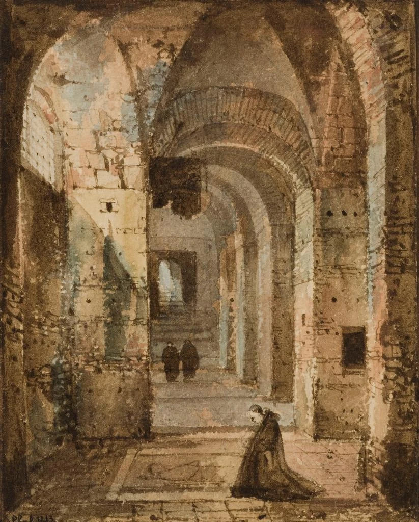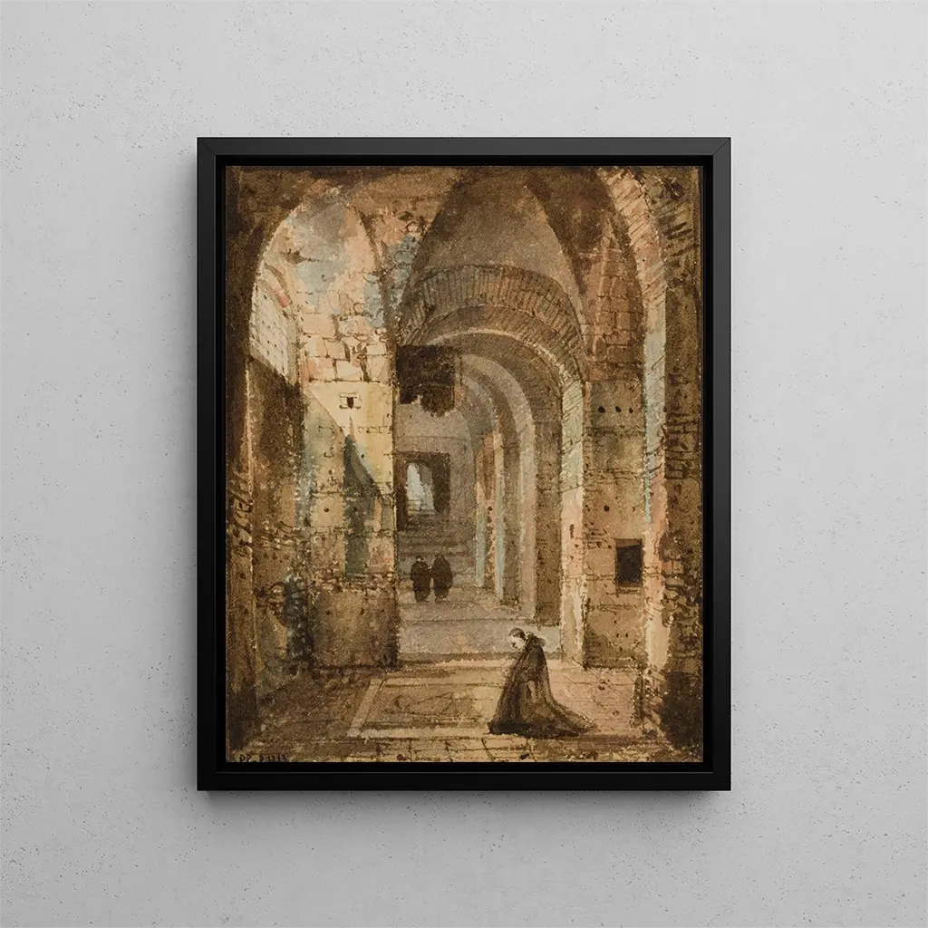 Konsttryck | Ermiten knäböjande under valv - François-Marius Granet