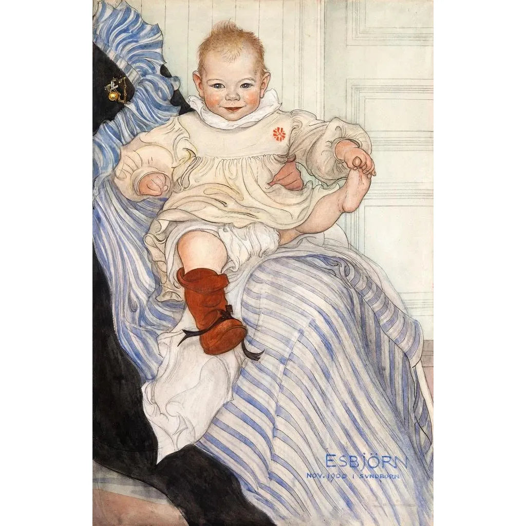 Esbjörn : ett porträtt av oskuld och mildhet I denna konsttryck av Esbjörn fångar Carl Larsson själva essensen av barndomen genom ett fint och rörande porträtt. Kompositionen framhäver en ung pojke, sittande med ett drömmande uttryck, omgiven av ett mjukt ljus som fyller scenen. Pastellfärger, typiska för Larssons stil, skapar en varm och lugnande atmosfär. Akvarelltekniken, med sina subtila nyanser, gör det möjligt att återge detaljerna i barnets ansikte och kläder med stor finhet. Detta konsttryck väcker en mild nostalgi och bjuder in betraktaren att fördjupa sig i sina egna barndomsminnen. Carl Larsson : en mästare inom arts & crafts-rörelsen Carl Larsson, en ikon inom arts & crafts-rörelsen, är känd för sin förmåga att förena konst och vardagsliv. Född 1853 i Sverige, påverkades han av impressionismen och utvecklade en unik stil som hyllar skönheten i enkla ögonblick. Larsson ägnade mycket av sitt verk åt att skildra sin familj och sitt hem, och förvandlade vanliga scener till konstverk. Hans tillvägagångssätt omdefinierade inte bara familjeporträttet, utan bidrog också till att främja den skandinaviska konsten i början av 1900-talet. Hans målningar, som den av Esbjörn, fortsätter att inspirera och beröra konstälskare världen över. En dekorativ konsttryck med många fördelar Konsttrycket av Esbjörn är ett dekorativt inslag som smidigt passar in i olika utrymmen, oavsett om det är ett vardagsrum, ett kontor eller ett barnrum. Dess tryckkvalitet och trohet mot de ursprungliga färgerna gör detta konsttryck till ett perfekt val för den som vill tillföra en konstnärlig touch till sitt hem. Den estetiska attraktionen i detta konsttryck ligger i dess förmåga att väcka känslor och skapa en lugn atmosfär. Genom att välja detta konsttryck, får du en bit som inte bara förskönar din inredning, utan också berättar en rörande historia om barndom och familj.