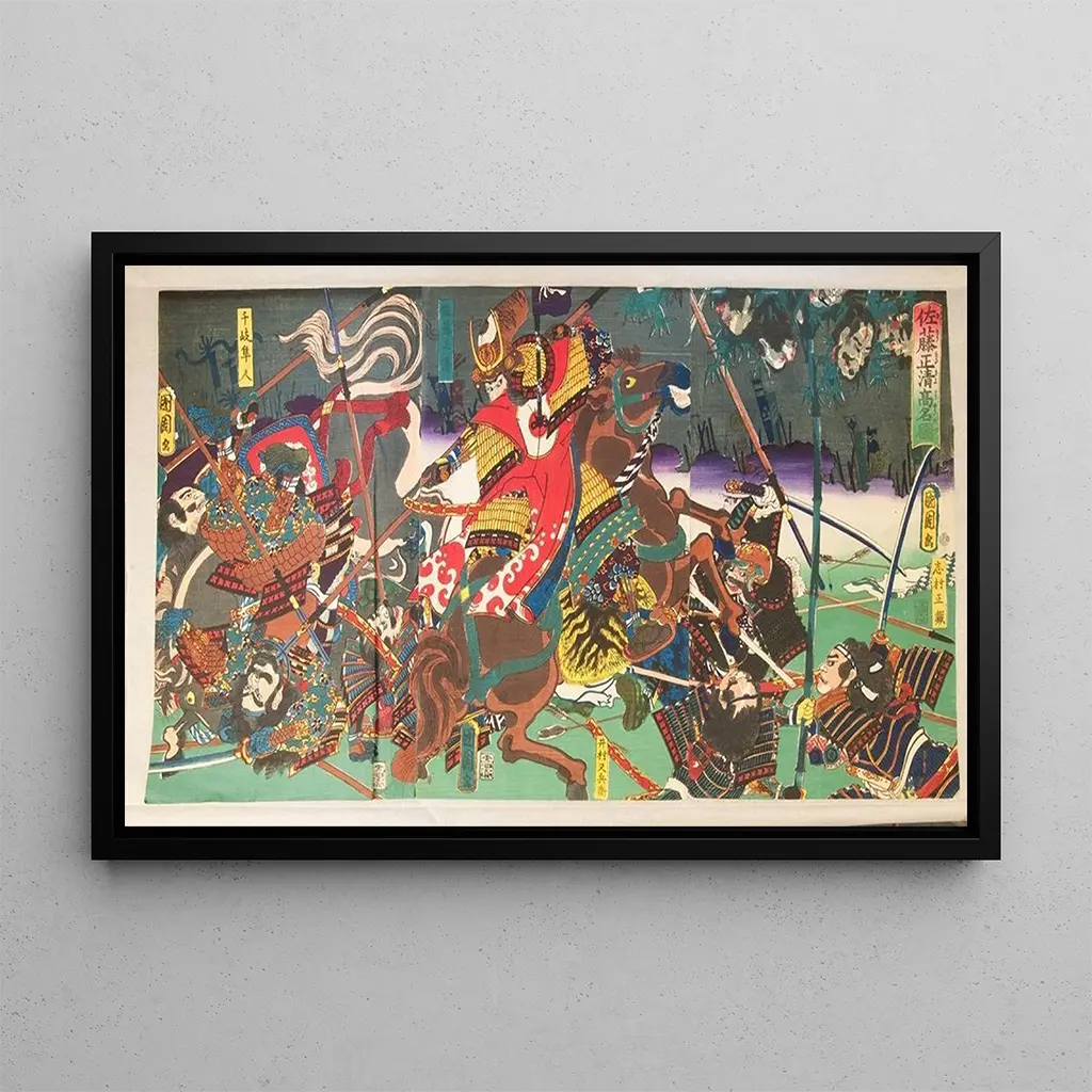 Estampe japonaise : une ode à la beauté éphémère L'estampe japonaise de Toyohara Kunichika est une œuvre qui capture l'essence même de la beauté fugace. Avec ses couleurs vives et ses détails minutieux, elle évoque un monde où la nature et l'art s'entrelacent harmonieusement. La technique de l'ukiyo-e, utilisée par Kunichika, permet de créer des compositions dynamiques et pleines de vie. Les motifs floraux et les scènes de la vie quotidienne se mêlent pour offrir une atmosphère poétique, invitant le spectateur à plonger dans un univers riche en émotions et en sensations. Chaque coup de pinceau semble raconter une histoire, une invitation à la contemplation de l'éphémère. Toyohara Kunichika : maître de l'ukiyo-e au XIXe siècle Toyohara Kunichika, actif durant la période Edo, est l'un des grands maîtres de l'estampe japonaise. Influencé par ses prédécesseurs et par l'évolution de la société japonaise, il a su adapter son style aux goûts de son époque tout en préservant l'essence de l'ukiyo-e. Ses œuvres, souvent centrées sur des acteurs de kabuki et des scènes de la vie urbaine, témoignent d'une profonde compréhension des émotions humaines. Kunichika a également été un pionnier dans l'utilisation de la couleur, apportant une nouvelle dimension à ses estampes. Son héritage perdure, influençant de nombreux artistes contemporains et fascinant les amateurs d'art à travers le monde. Une acquisition décorative aux multiples atouts La reproduction de cette estampe japonaise est un choix décoratif idéal pour enrichir votre intérieur. Que ce soit dans un salon, un bureau ou une chambre, ce tableau apporte une touche d'élégance et de sérénité. Sa qualité d'impression garantit une fidélité remarquable aux détails originaux, permettant de ressentir toute la magie de l'œuvre de Kunichika. L'attrait esthétique de cette toile réside dans sa capacité à s'intégrer harmonieusement dans divers styles de décoration, qu'ils soient traditionnels ou contemporains. Offrez-vous une pièce unique qui saura captiver les regards et susciter des conversations.