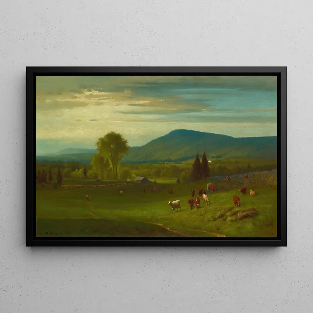 La reproduction de l'œuvre Été dans les Catskills évoque un paysage idyllique où la nature s'épanouit sous un ciel azur. Les couleurs vibrantes des arbres et des champs, associées à une lumière douce, créent une atmosphère sereine et accueillante. George Inness, maître du paysage américain, utilise des techniques de peinture à l'huile qui rendent la scène vivante et immersive. Chaque coup de pinceau semble capturer le souffle du vent et le chant des oiseaux, invitant le spectateur à se plonger dans cette évasion bucolique.