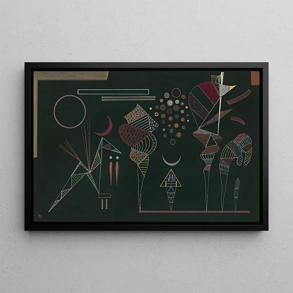 Wassily Kandinsky, figure emblématique du XXe siècle, est souvent considéré comme l'un des précurseurs de l'art abstrait. Né en Russie en 1866, il a été influencé par la musique, la spiritualité et le folklore, ce qui a profondément marqué son approche artistique. Kandinsky a évolué à travers différentes périodes, allant du post-impressionnisme à l'abstraction pure, et a cofondé le mouvement du Bauhaus. Son travail, dont « Étude pour contrastes réduits » est un exemple frappant, a ouvert la voie à de nombreux artistes contemporains, faisant de lui une figure incontournable de l'histoire de l'art moderne.