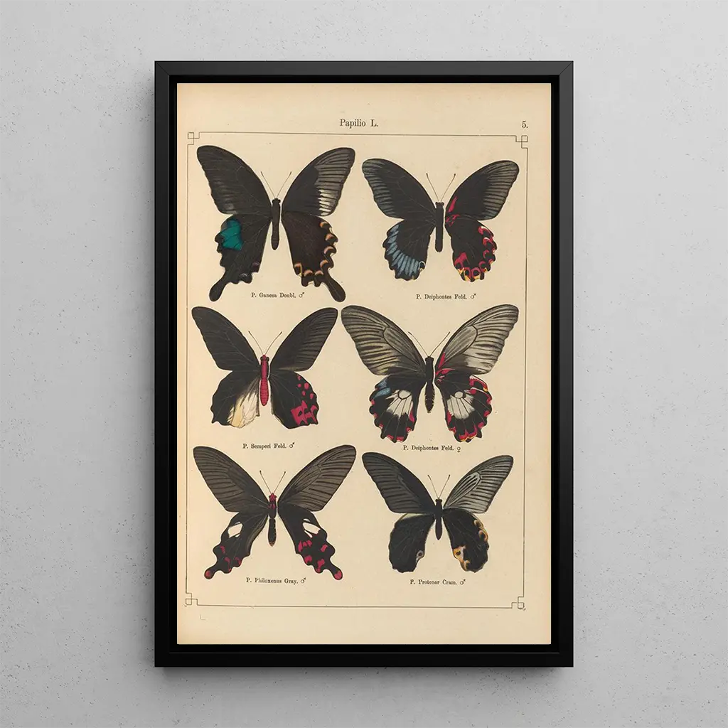 De "Papillons exotiques Pl005" av Otto Staudinger tar oss med till en färgstark värld där varje fjäril tycks komma till liv. Den harmoniska kompositionen, kombinerad med en palett av livfulla färger, skapar en glad och dynamisk atmosfär. De minutiösa detaljerna på vingarna, med sina unika mönster, avslöjar Staudingers exceptionella talang för att fånga skönheten hos dessa delikata varelser. Denna konsttryck framkallar inte bara mångfalden av arter, utan också naturens skörhet, och bjuder in betraktaren att uppskatta den praktfulla världen omkring oss.