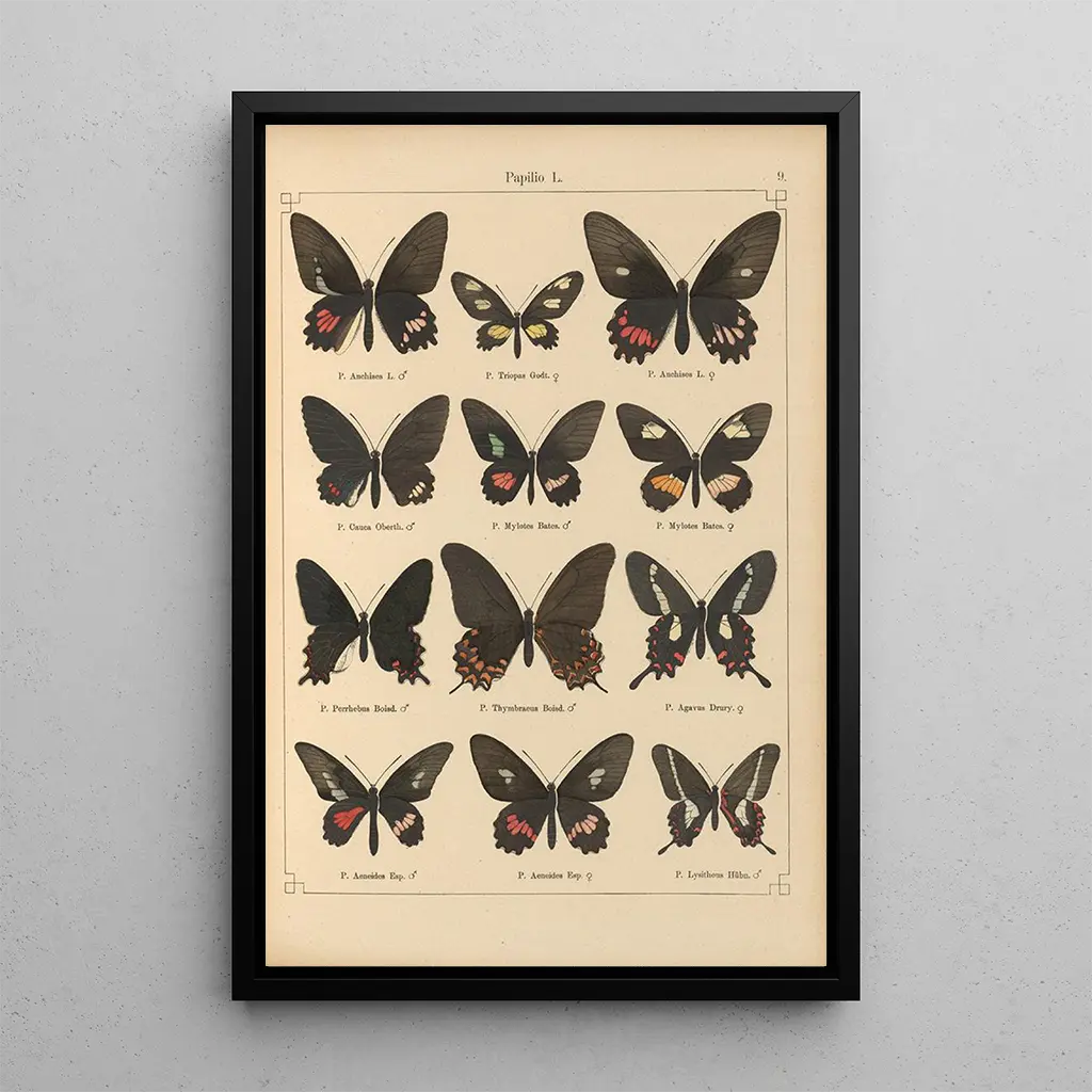 I denna konsttryck av Papillons exotiques Pl009 tar Otto Staudinger oss med till hjärtat av en livfull och färgrik natur. Canvastavlan, med sina strålande nyanser och minutiösa detaljer, fångar essensen av dessa delikata varelser. Fjärilarna, med utbredda vingar, tycks komma till liv inför våra ögon och skapar en lätt och luftig atmosfär. Staudingers teknik, som kombinerar akvarell och teckning, ger verket djup och ljusstyrka som inbjuder till förundran. Varje element är noggrant sammansatt och erbjuder en harmonisk komposition som hyllar naturens mångfald.