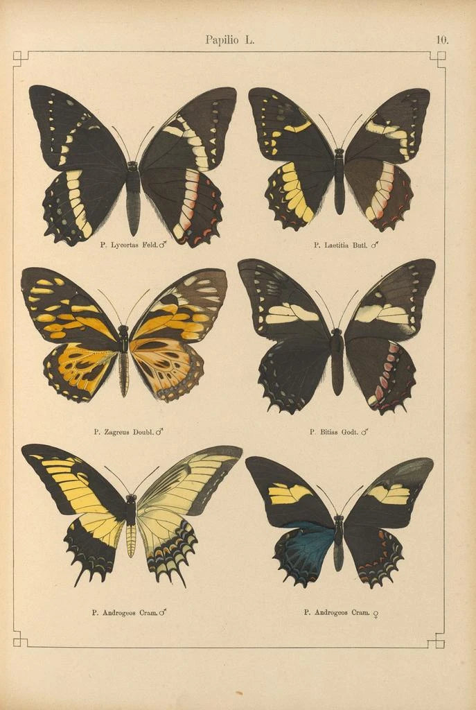 Konsttrycket av Papillons exotiques Pl010 fördjupar oss i en fascinerande värld där naturen uttrycker sig genom strålande färger och delikata former. Otto Staudinger, med sin oöverträffade talang, lyckas att förvandla dessa insekter med skimrande vingar till konstnärliga verk, vilket skapar en atmosfär av lätthet och grace. Varje fjäril, noggrant detaljerad, verkar vara redo att flyga iväg och tillför en känsla av rörelse till kompositionen. De livfulla nyanserna, från djupa blå till ljusa gult, blandas harmoniskt och avslöjar skönheten och mångfalden i den naturliga världen.