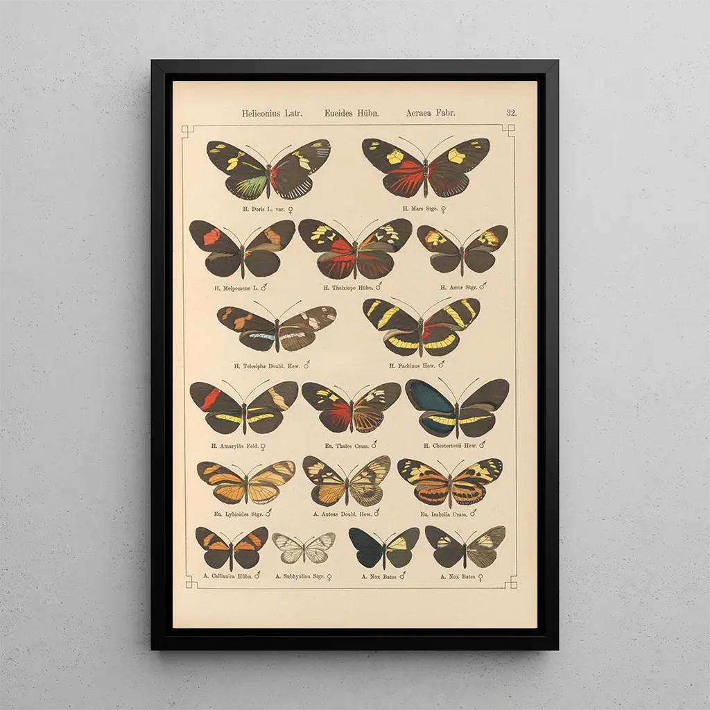 I denna konsttryck av Papillons exotiques Pl032 fördjupar Otto Staudinger oss i en livfull värld där naturen avslöjar sig i sina mest delikata former. De slående färgerna på fjärilarna, från djupblå till ljusgula, skapar en atmosfär av lätthet och glädje. Akvarelltekniken, som behärskas med fin precision, fångar subtila nyanser och minucösa detaljer av varje insekt. Verket inbjuder till ett lugnt eftertanke, där varje fjäril verkar ta sin flykt, bärande med sig en friskhet och skönhet.