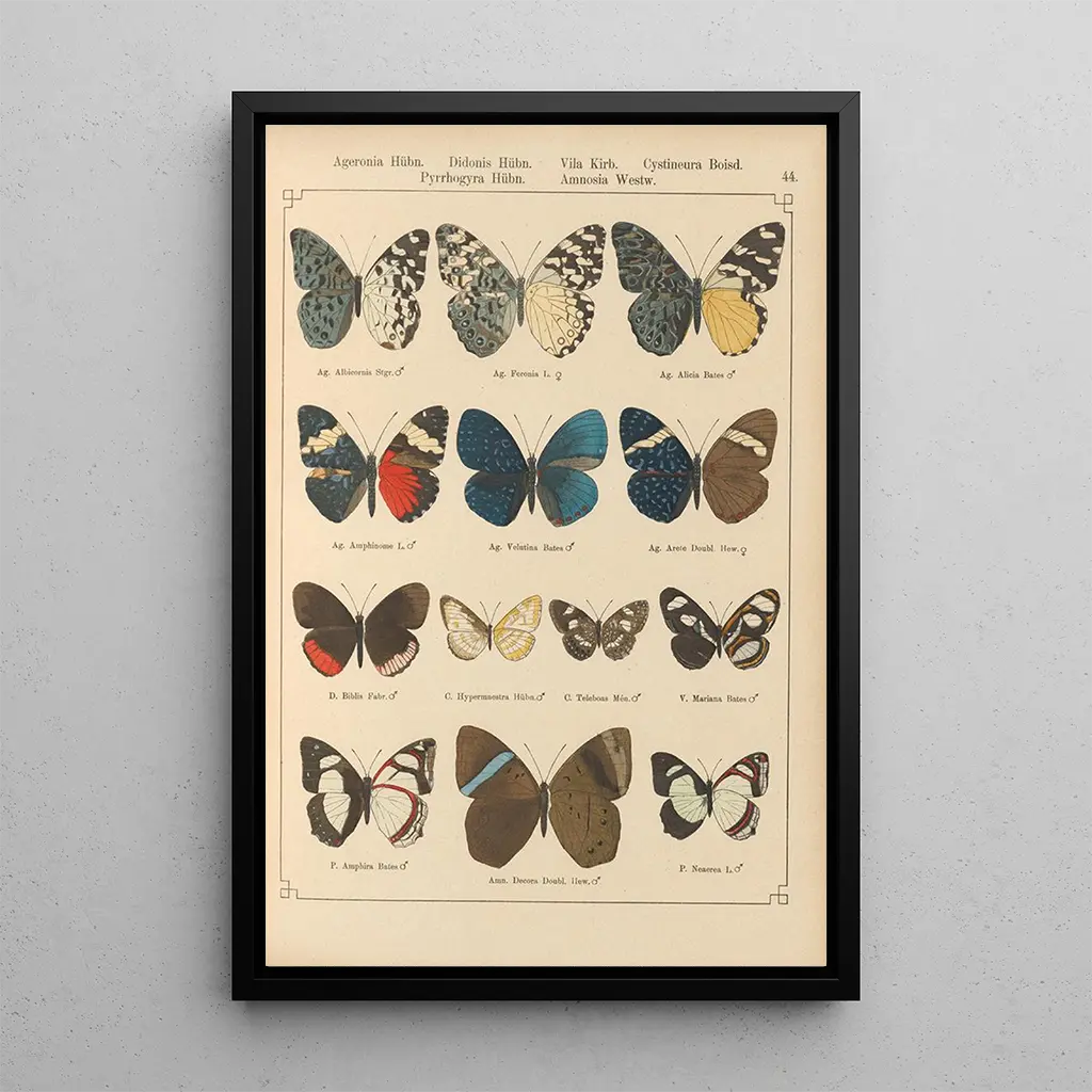 Konsttrycket av verket "Papillons exotiques Pl044" av Otto Staudinger fördjupar oss i en livfull värld där naturen uttrycker sig med glans. De skimrande färgerna på fjärilarnas vingar, från djupa blå till lysande gult, skapar en atmosfär av lätthet och dröm. Tekniken med akvarell, använd med fin precision, gör det möjligt att återge de finstämda mönstren och texturerna, vilket nästan får vingarna att vibrera under ljuset. Varje detalj är noggrant observerad, inbjuder betraktaren till en noggrann och förundrad betraktelse av dessa väsens flyktiga skönhet.