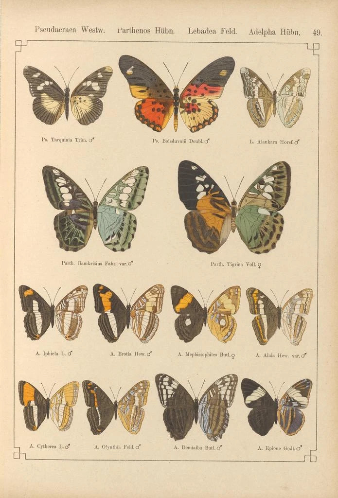 Otto Staudinger, illustratör och entomolog från 1800-talet, satte sitt avtryck på sin tid med sina precisa och konstnärliga illustrationer av insekter. Hans arbete, influerat av den naturalistiska rörelsen, syftar till att fånga naturens skönhet och komplexitet. "Papillons exotiques Pl049" är en del av hans ikoniska verk, där han lyckas förena vetenskap och konst. Staudinger bidrog till att utöka kunskapen om insekter samtidigt som han presenterade dem på ett konstnärligt sätt, vilket gör hans verk till referenser för både forskare och konstälskare. Hans arv består, och inspirerar generationer av konstnärer och naturalister.